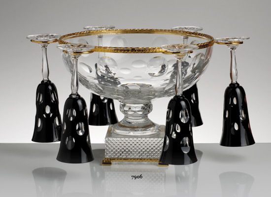 Coupe transparente, Flûtes cristal noir et Bronze doré.