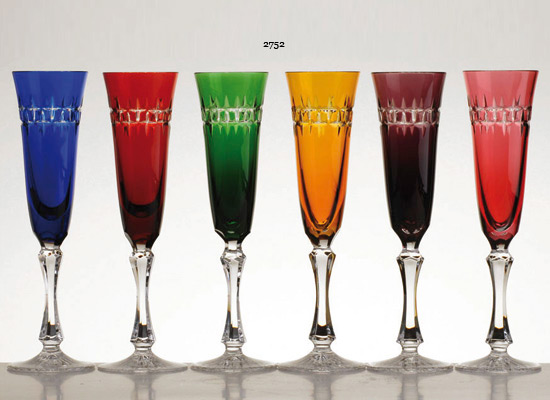 Verres à vin du Rhin en cristal très pur, couleur teinté dans la masse, , verres soufflé bouche, taillé et polit à la main.