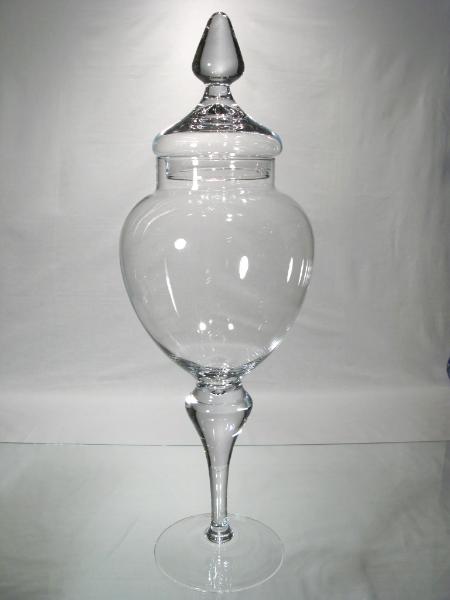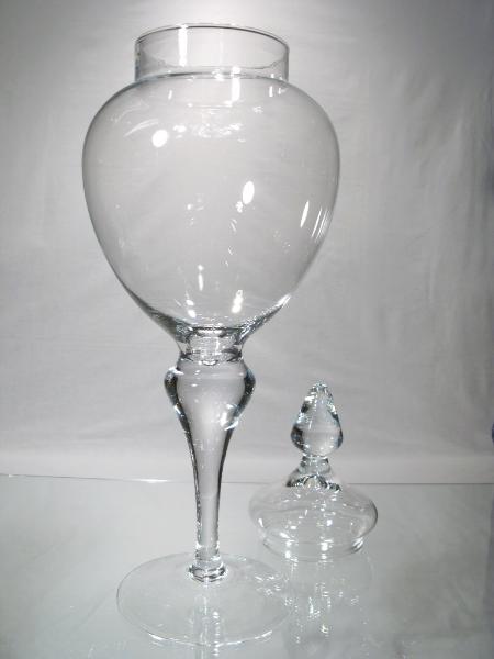 Bonbonnière uni en cristal sur pied et avec couvercle.