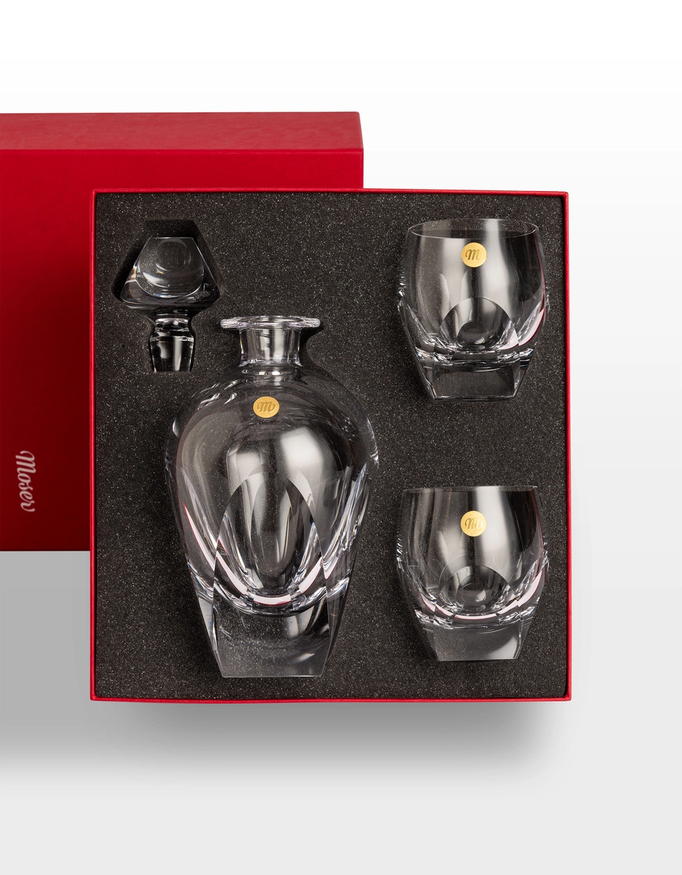 Collection en authentique cristal de bohême, soufflé bouche, taillé et poli à la main selon les mêmes techniques traditionnelles depuis 1857, date de création de la cristallerie Moser. Depuis cette date, Moser n’a pas changé sa méthode de fabrication : aucune machine automatisée n’est utilisée. Et tout se passe dans les ateliers Moser à Carlsbad, en région de Bohême (République Tchèque).