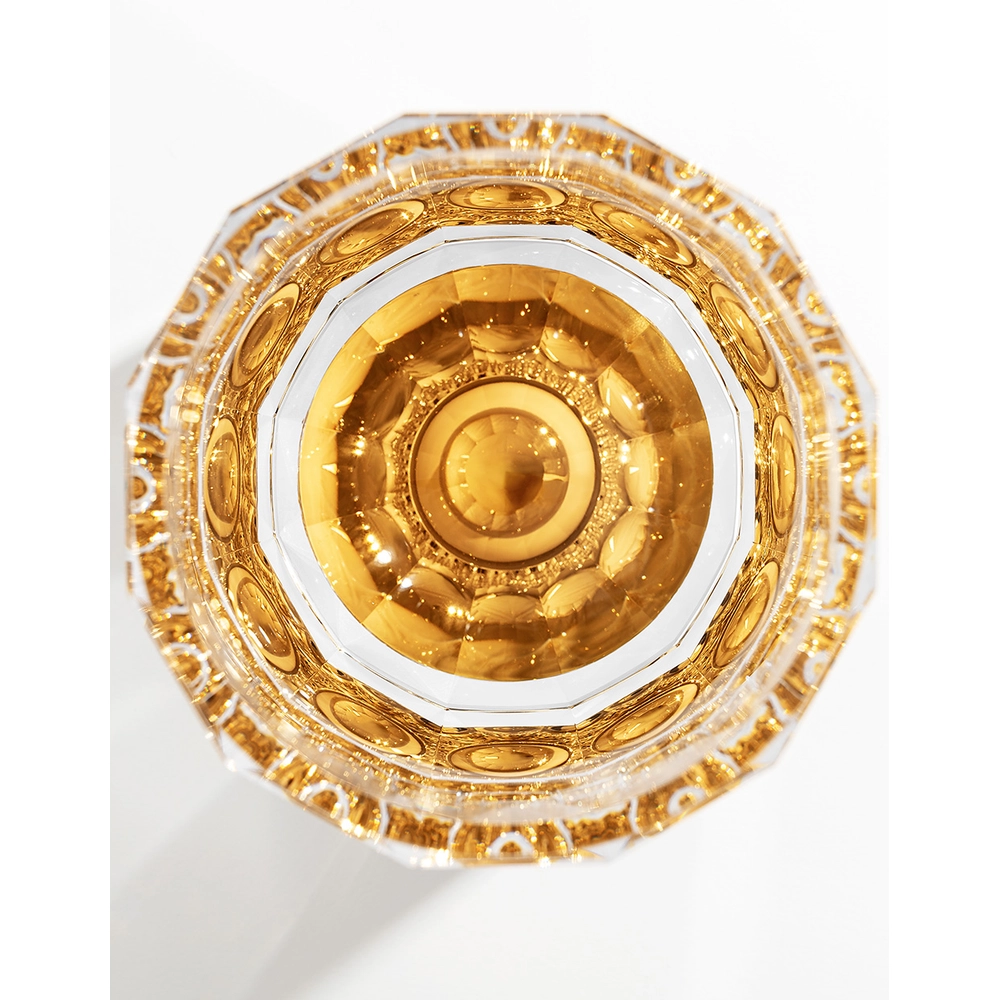 Ensemble composé d’une carafe à whisky & de 2 verres à whisky old fashionned en authentique cristal de bohême taillé, avec un fond en or 24 carats, effet miroir. Création de Moser, la plus prestigieuse & réputée cristallerie de Bohême. Collection Solaris, inspirée des rayons du soleil.