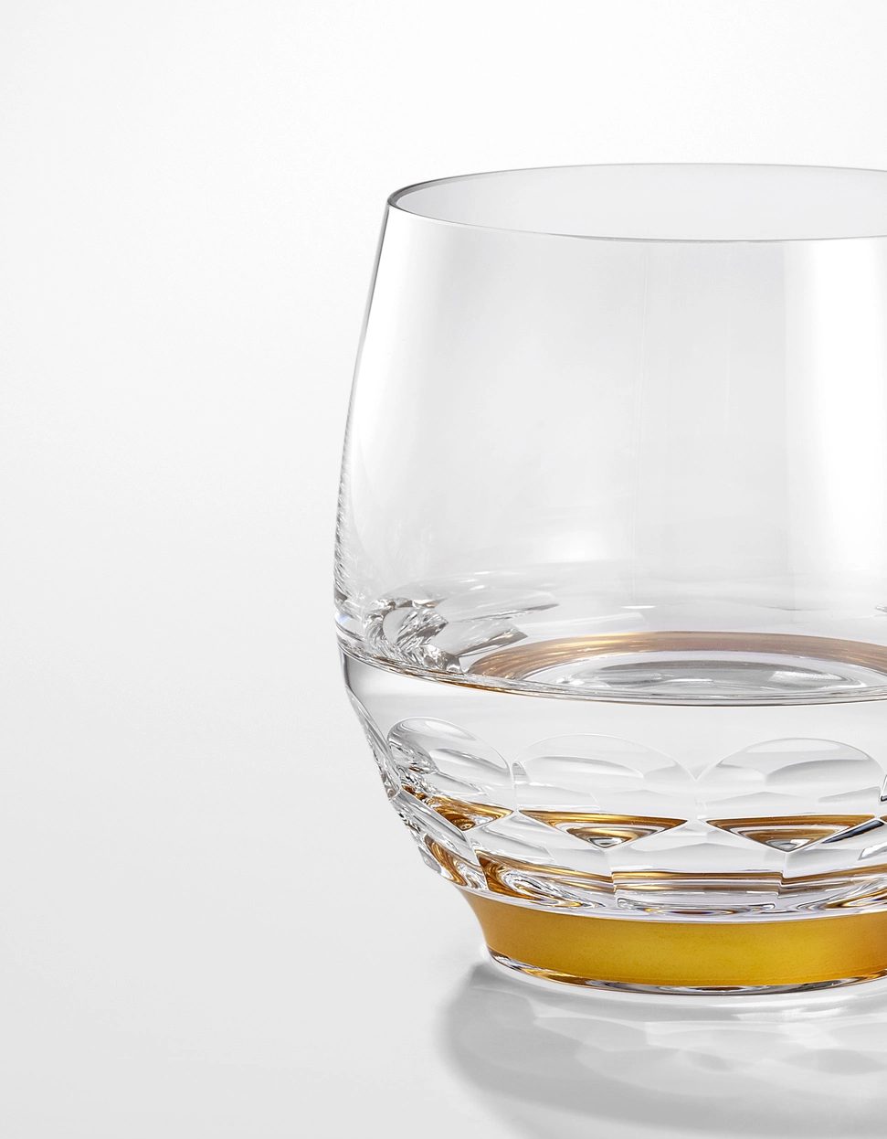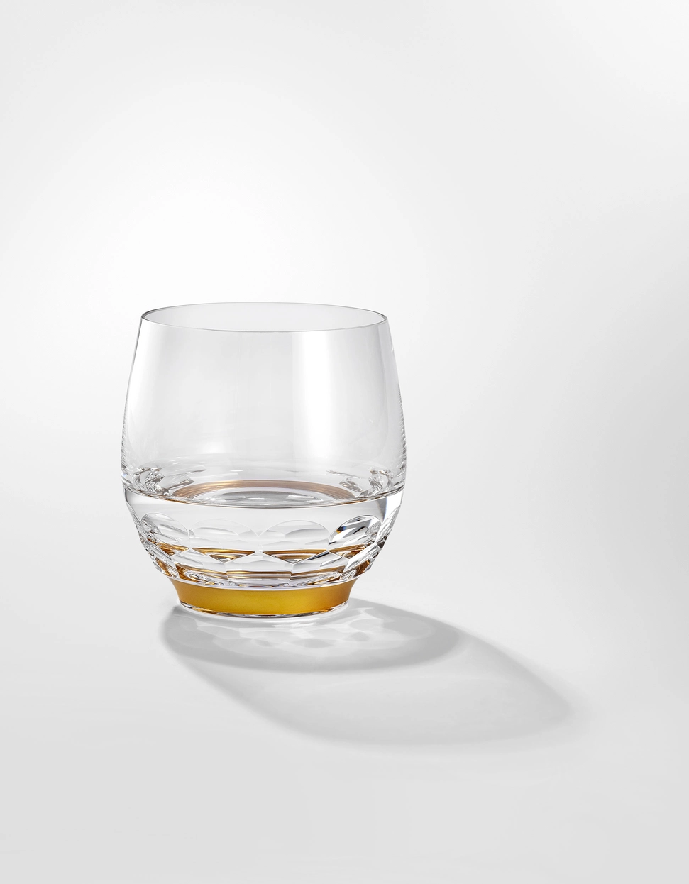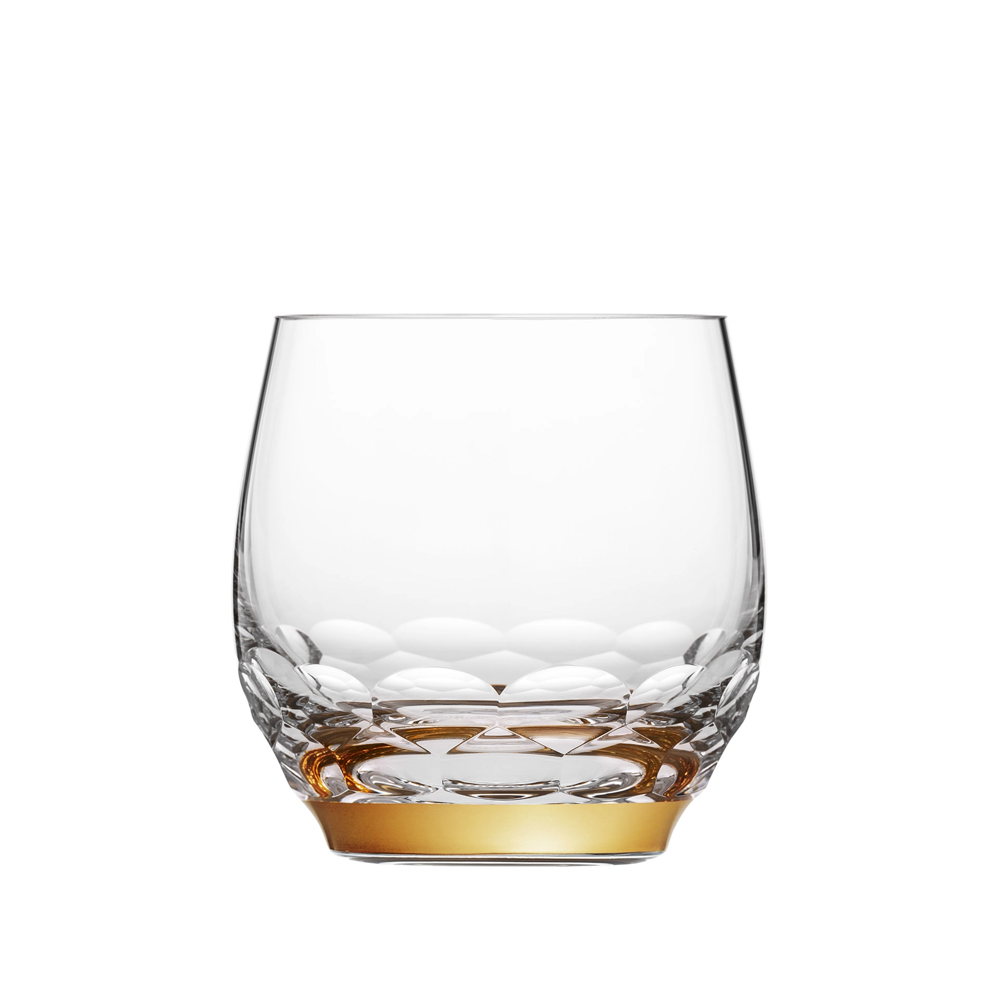 Verre à spiritueux en authentique cristal de bohême taillé, avec une bague en or fin 24 carats. Collection Jewel de Moser, la plus prestigieuse & réputée cristallerie de Bohême.
