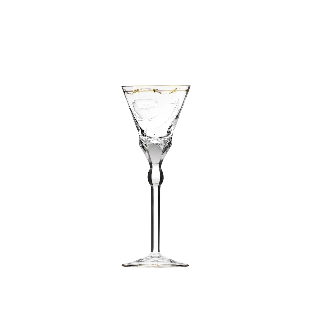 Verre à vin blanc en authentique cristal de bohême taillé, gravé artistiquement, et subtilement décoré avec de l’or 24 carats. Création signée Moser, la plus prestigieuse & réputée cristallerie de Bohême. Collection Paula, imaginée en 1902, et portant le nom de l’épouse de Leo Moser, le fondateur de Moser.