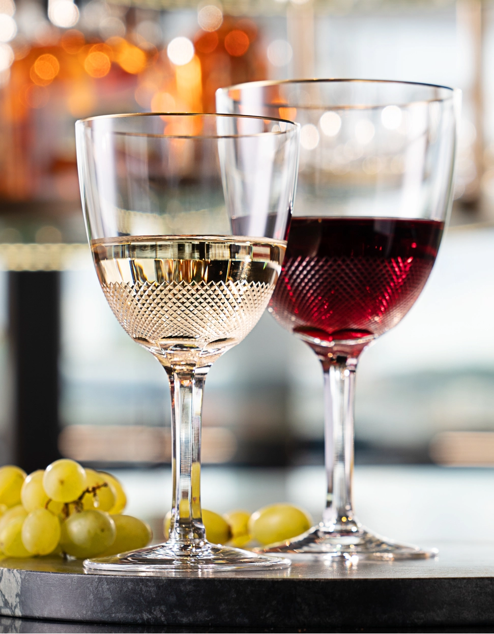 Collection en cristal de bohême taillé créée sur-mesure en 1907 pour l’épouse du roi anglais Édouard VII. Depuis, elle n’a cessé de séduire la haute société en devenant populaire auprès de personnalités telles que le roi Haakon VII de Norvège, le sultan Abdul Hamid de Turquie ou le maharaja de Baroda. Cette collection était également utilisée dans les ambassades tchécoslovaques, ainsi qu’au siège des Nations unies à New York. Et pour cause, la perfection des formes classiques et la subtilité de la décoration, obtenues grâce à une coupe précise et à une quantité minimale d’or, confèrent à ce service un caractère sûr et solide. Son aspect austère s’inscrit dans l’esthétique néo-empire qui gagnait en popularité au début du siècle, au détriment de l’ornementation Art nouveau. Tandis que l’élégante bande en or 24 carats qui borde délicatement les bords des verres rappelle ses origines royales.