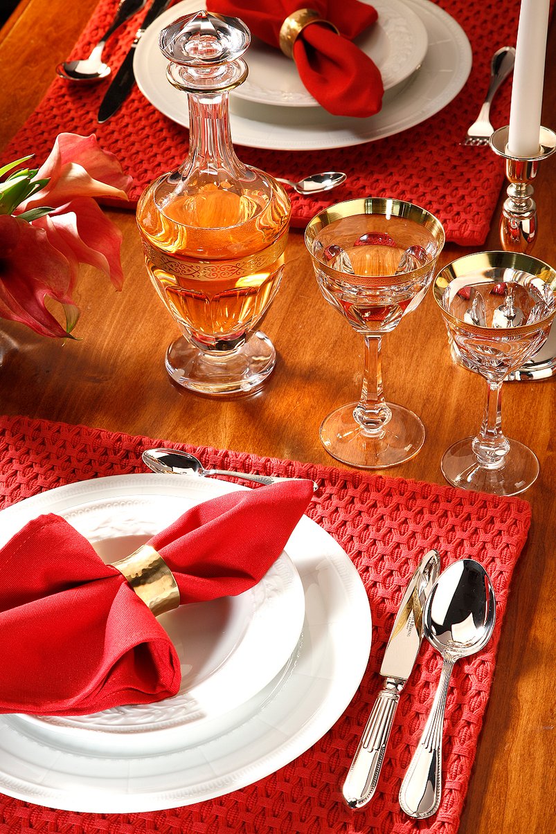 Verre à vin rouge, en authentique cristal de bohême taillé, avec une élégante bande en or 24 carats. Collection Lady Hamilton (inspirée d’Emma Hamilton) de Moser, la plus prestigieuse & réputée cristallerie de Bohême.