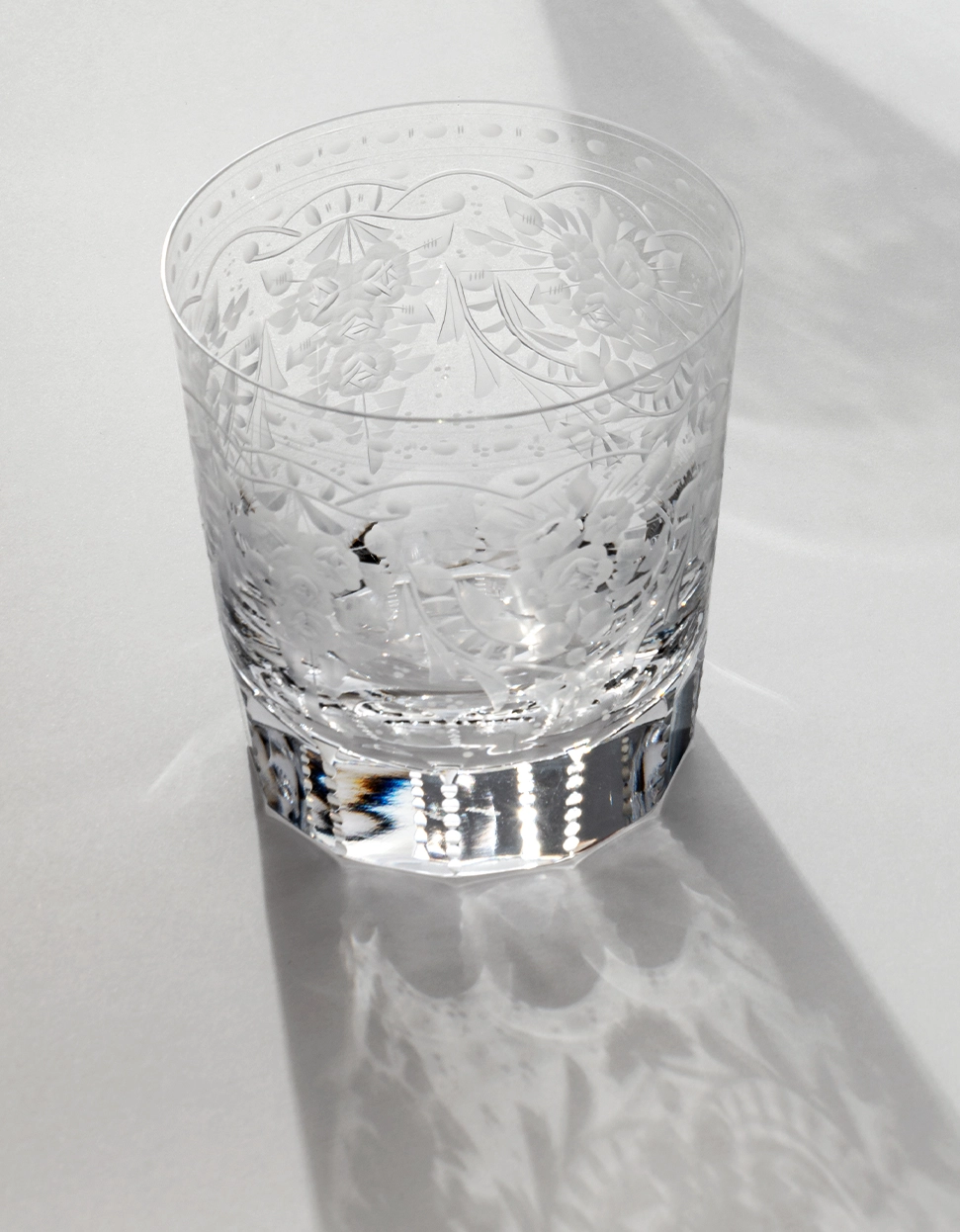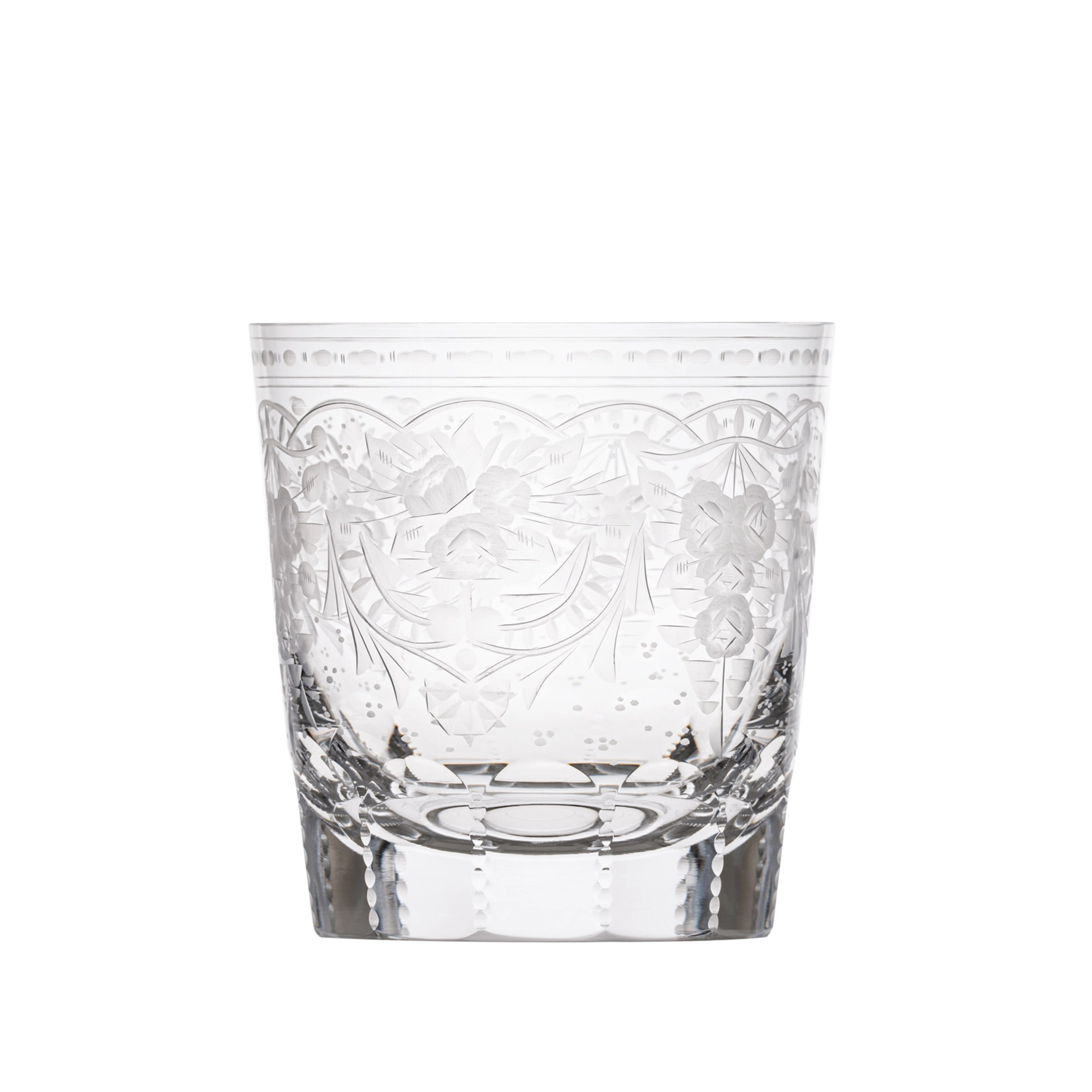 Verre à whisky en authentique cristal de bohême taillé, et gravé artistiquement. Création signée Moser, la plus prestigieuse & réputée cristallerie de Bohême. Collection Maharani Édition 2023, plus simple & purée que la collection originale imaginée en 1895 pour l’épouse du maharaja de Travancore.