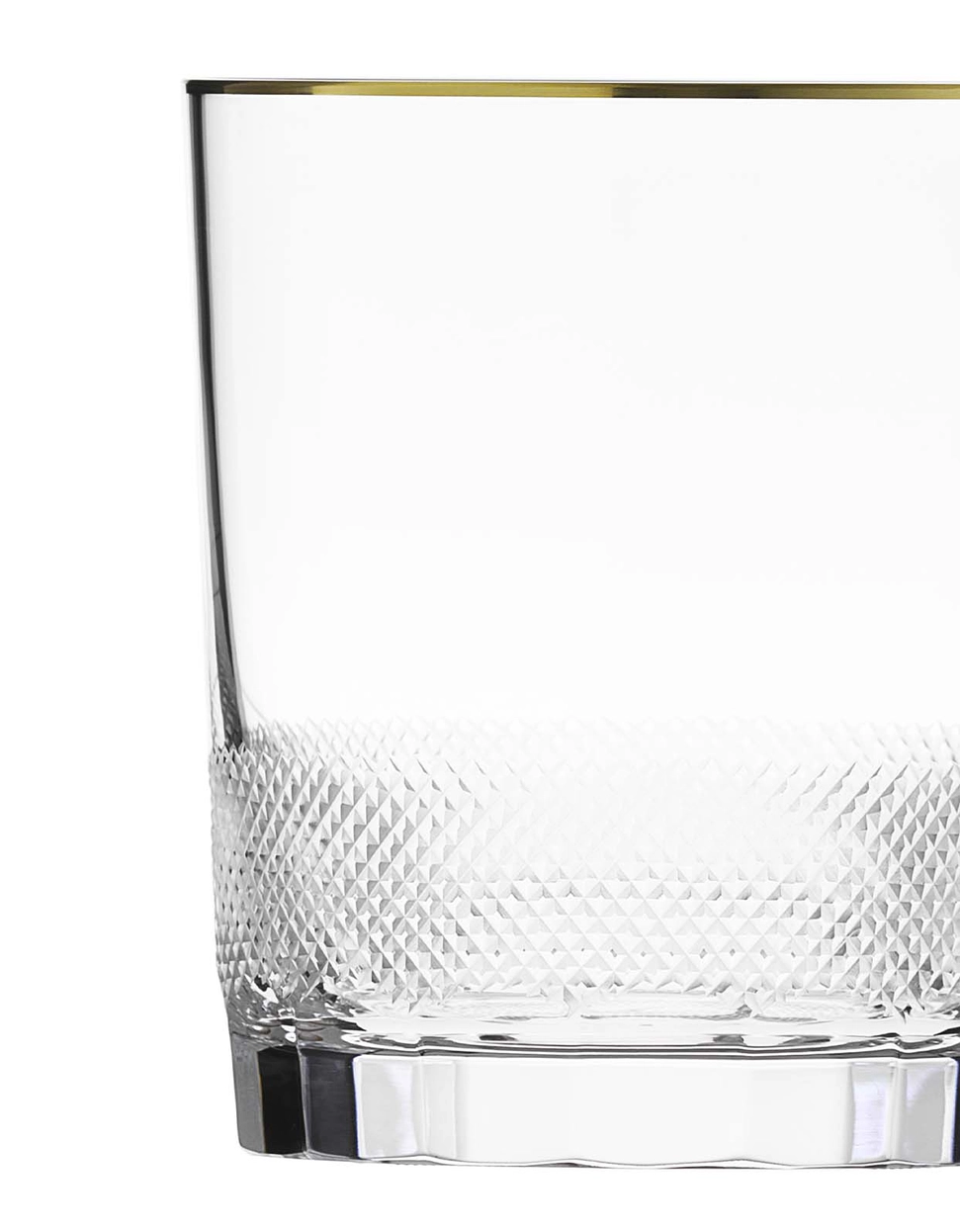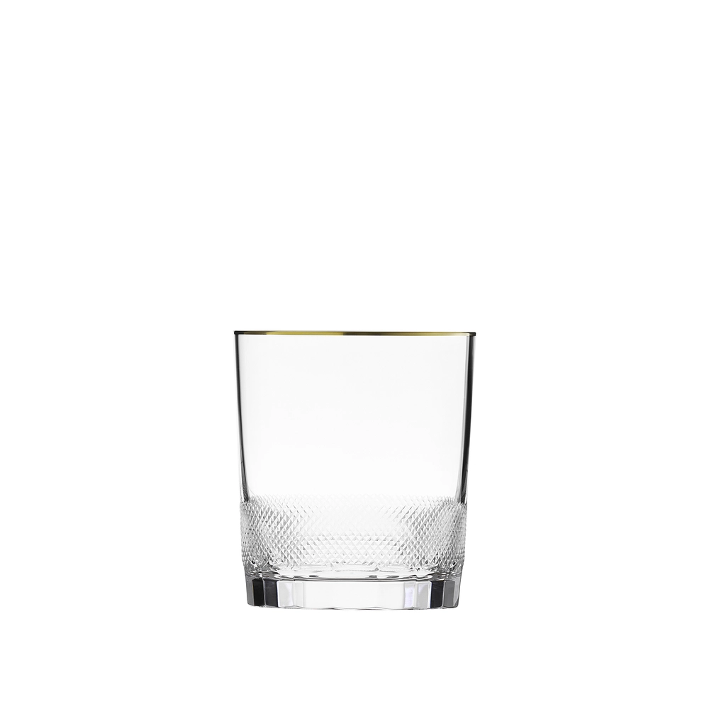 Verre à whisky en authentique cristal de bohême taillé, avec une élégante bande en or 24 carats. Collection Royal de Moser, la plus prestigieuse & réputée cristallerie de Bohême.