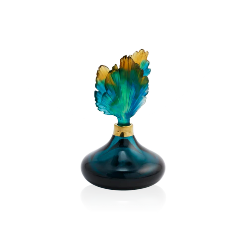 Ce flacon de parfum Daum, issu de la collection Fleur de Paon et inspiré de la majestueuse fleur de paon, révèle une émanation poétique de la nature. Façonné en pâte de verre, technique séculaire maîtrisée par Daum, ce joyau artisanal se distingue par sa palette de couleurs chatoyantes, capturant les éclats de lumière et offrant un rendu visuel unique. La maîtrise de la pâte de verre, technique séculaire, confère à ce flacon une texture délicate, tandis que la transparence colorée du cristal évoque les nuances infinies de la fleur de paon. Ode à la beauté naturelle et à l’élégance, ce flacon à parfum Daum apporte une touche de raffinement et invite à une contemplation sensorielle dans votre espace de vie. Création unique de la prestigieuse cristallerie Daum.