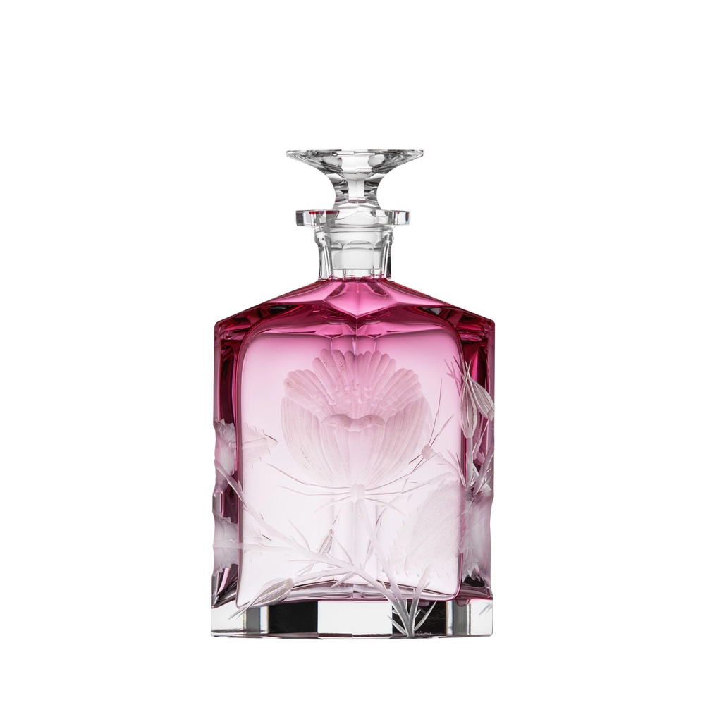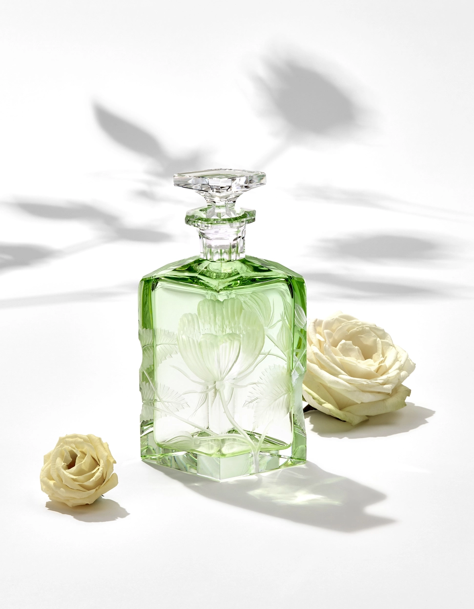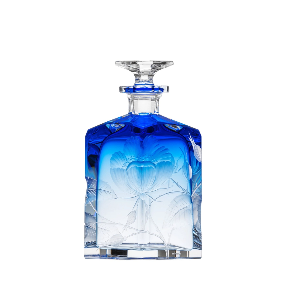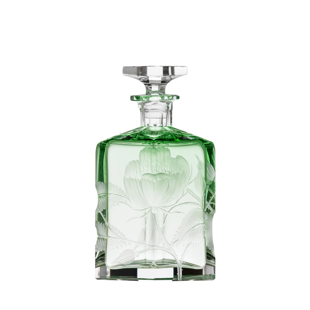 Carafe « Rose » en authentique cristal de bohême taillé, et gravé d’un magnifique motif de roses. Collection Art Nouveau de Moser, la plus prestigieuse & réputée cristallerie de Bohême.
