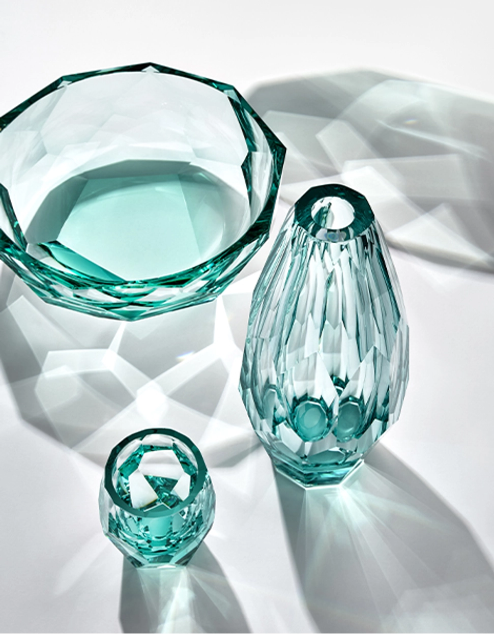 Imaginée en 2009 par Rony Plesl, l’un des designers contemporains les plus en vue, cette collection est inspirée de sa fascination pour le cubisme, célèbre mouvement artistique dont les artistes tchèques faisaient partie de la crème de la crème. Chaque pièce de cette collection est unique : taillée à la main avec des lignes positionnées de manière à ce que la lumière qui la traverse crée une autre dimension, et vous incite à continuer à la découvrir.