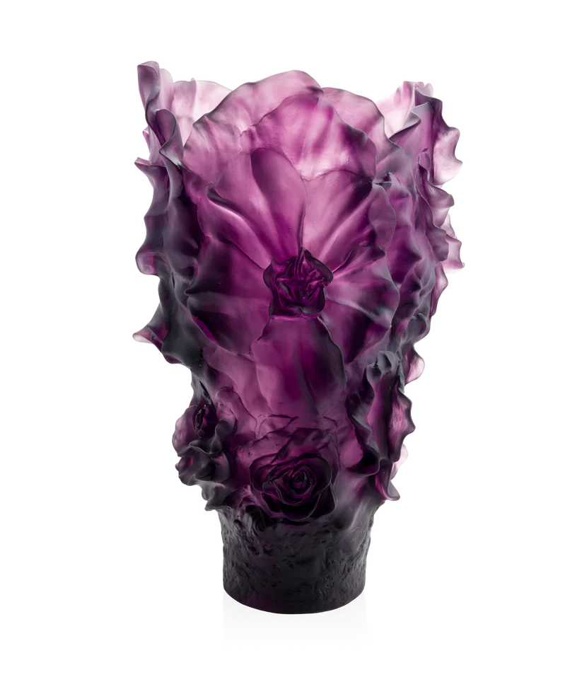 Ce vase Camélia Daum teinté de violet, inspiré par la beauté délicate des camélias, évoque la splendeur d’un jardin en fleurs. Confectionné avec soin à la main en pâte de verre, technique séculaire maîtrisée par Daum, le cristal s’habille de nuances violettes, capturant des éclats de lumière et donnant vie à cette œuvre d’art. Les courbes gracieuses du vase et son col élancé créent une danse fluidique avec la lumière qui sublimera votre espace. Ce vase, qu’il soit rempli de fleurs ou contemplé vide, invite à l’appréciation de la maîtrise artisanale de la prestigieuse cristallerie Daum. Modèle limité à 99 exemplaires.