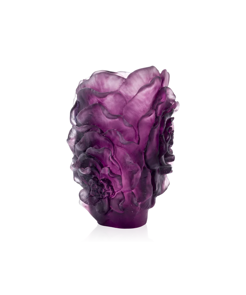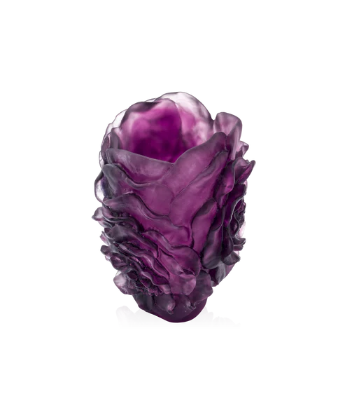 • Vase Daum en pâte de verre violette, collection Camélia. Édition numérotée.
