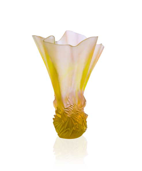 Le vase Croisière Daum évoque évoque la douceur des formes organiques. Réalisé en pâte de verre, il révèle la pureté de la nature sublimée et un hommage à la nature florissante. Ses jeux de lumière et de transparence subliment une invitation à la contemplation, créant une aura fascinante. Création unique de la prestigieuse cristallerie Daum. Édition numérotée.
