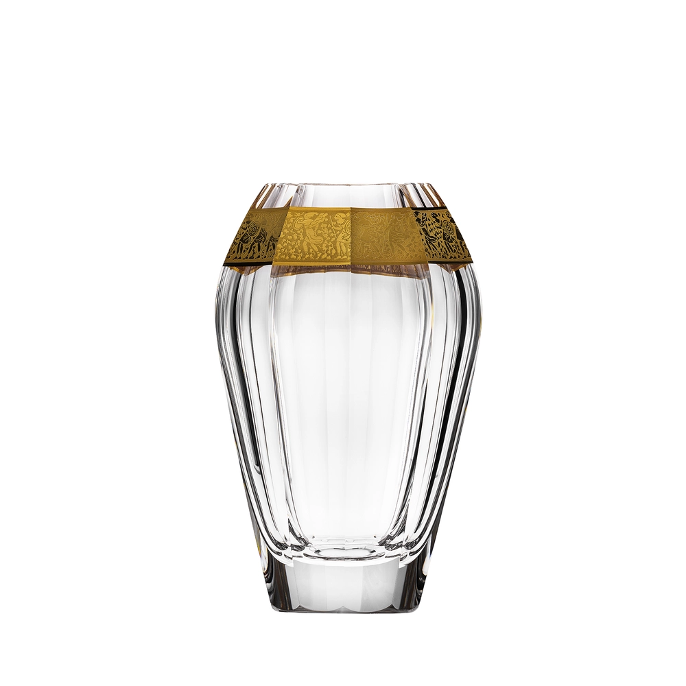 Vase en authentique cristal de bohême taillé, avec une élégante bande en or 24 carats sur le haut de celui-ci. Collection Diva de Moser, la plus prestigieuse & réputée cristallerie de Bohême.