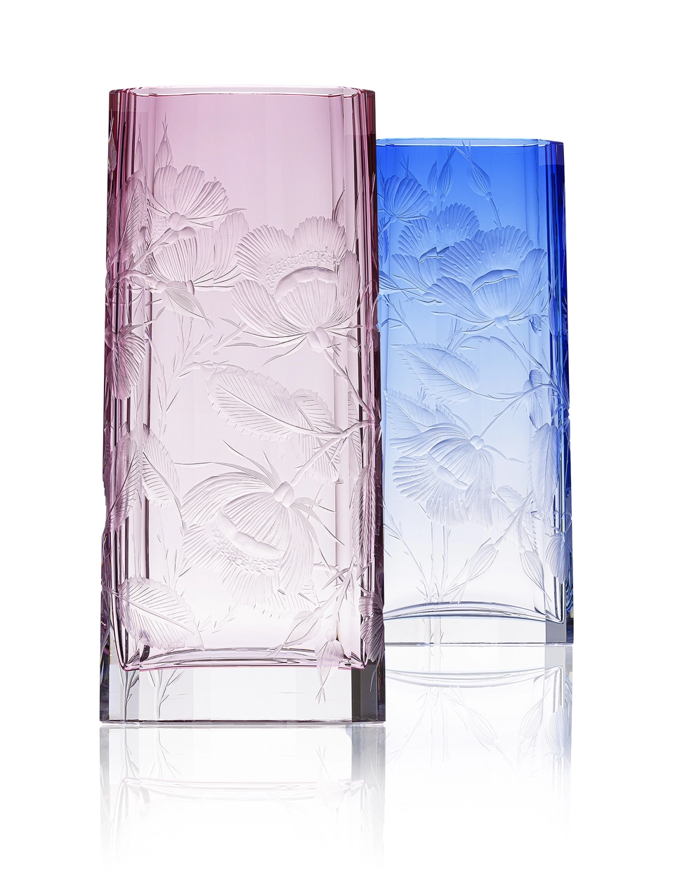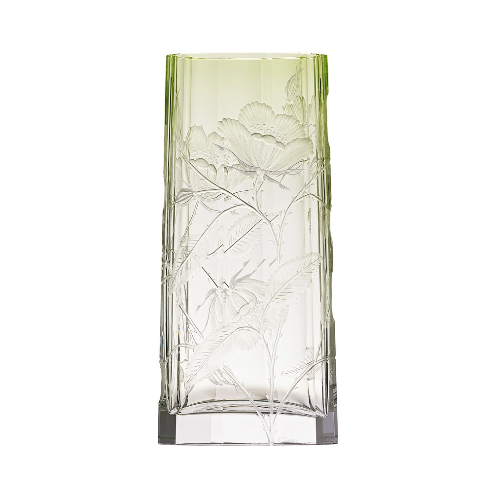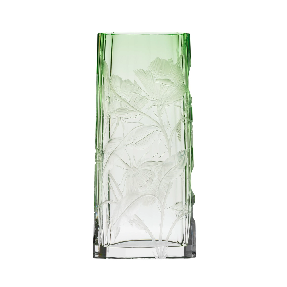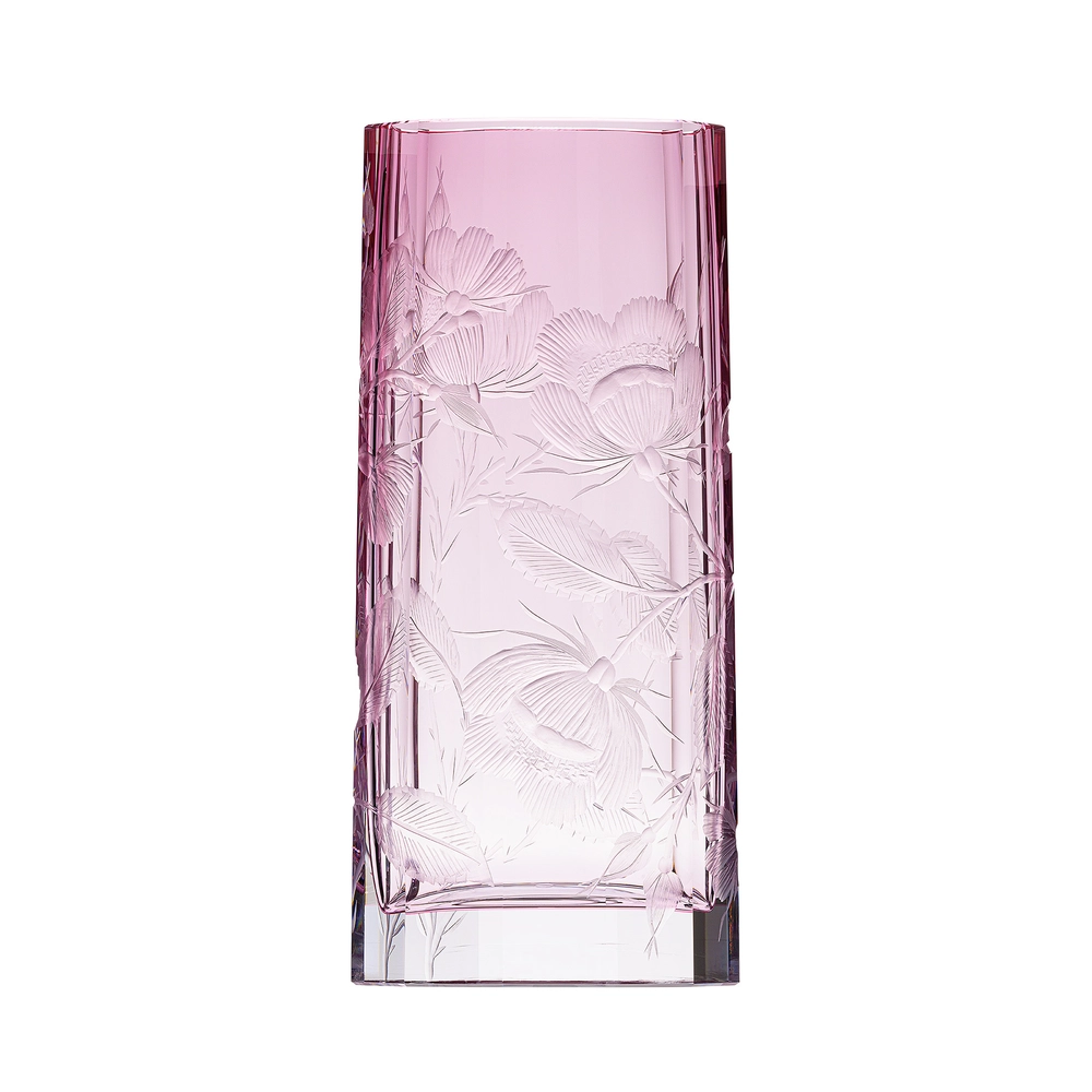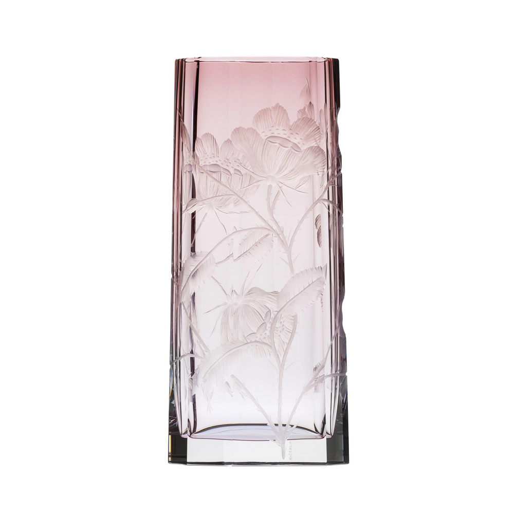 Vase « Goddess » en authentique cristal de bohême taillé, gravé d’un magnifique motif de roses. Collection Art Nouveau de Moser, la plus prestigieuse & réputée cristallerie de Bohême.