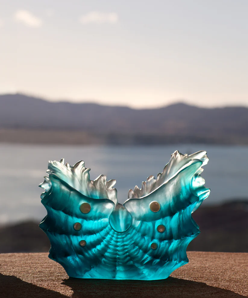 Le vase Maya Daum, au design coquillage, évoque la puissance du monde sauvage. Réalisé en pâte de verre, il révèle le souffle de la nature et une présence magnétique. Ses jeux de lumière et de transparence subliment la noblesse du mouvement, créant une aura fascinante. Une œuvre poétique et intemporelle, où l’art et la nature s’unissent. Création unique de la prestigieuse cristallerie Daum. Édition limitée à 225 exemplaires.