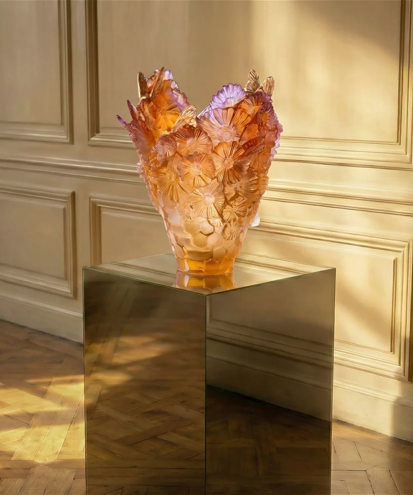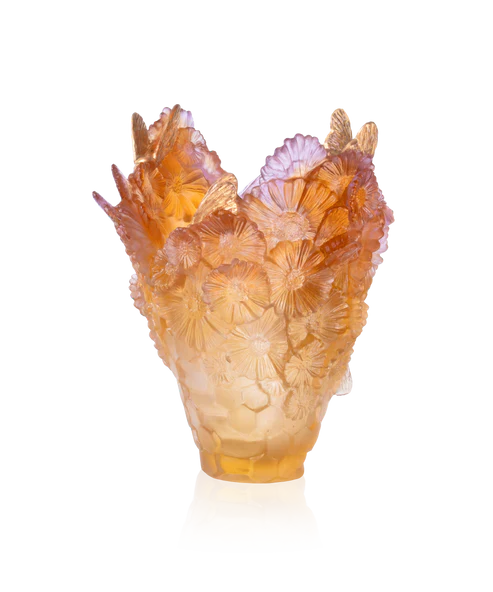 Ce Vase Or d’Abeille Daum grand modèle, issu de la collection Or d’Abeille et limité à 125 exemplaires dans le monde, évoque le charme d’un jardin secret : au cœur des motifs, de abeilles dorées scintillent comme des éclats d’or, prêtes à se révéler à qui sait regarder. Façonné en pâte de verre, technique séculaire maîtrisée par Daum, les formes élégantes rappellent des clairières oubliées où la lumière caresse la vie. Façonné en pâte de cristal Daum, ce vase conjugue la précision du Verre Daum et l’exigence d’une cristallerie française d’exception. La signature Daum vient parfaire la pièce, alliance de poésie et de maîtrise nancéienne. Création unique de la prestigieuse cristallerie Daum. Édition limitée à 125 exemplaires.