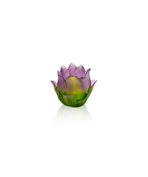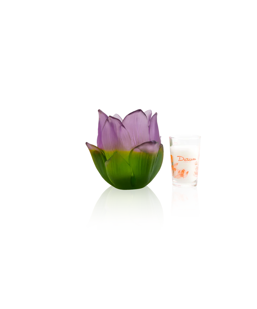 Ce vase-photophore Daum, issu de la collection Jardin de Lotus, évoque le murmure des fleurs. Réalisé avec la technique séculaire en pâte de verre, il révèle la lumière jouant sur les pétales de cristal et l’éclat des feuillages cristallins. Ses jeux de lumière et de transparence subliment la pureté de la nature sublimée, créant une aura fascinante. Une œuvre poétique et intemporelle, où l’art et la nature s’unissent. Création unique de la prestigieuse cristallerie Daum. Édition limitée à 250 exemplaires.
