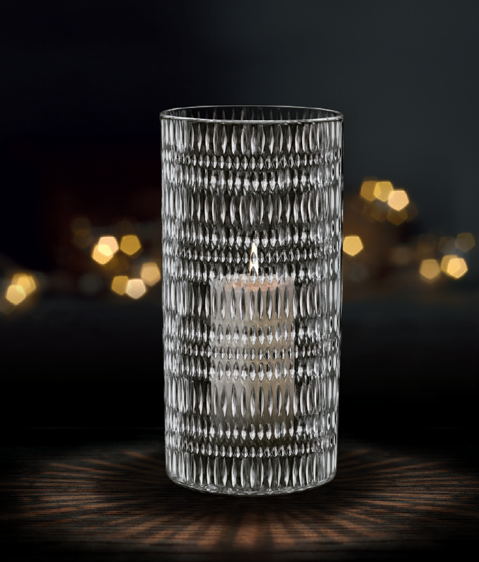 Le motif précis crée un jeu de lumière et d’ombre vibrant qui donne au verre un aspect vivant sous tous les angles. Sa surface texturée se distingue autant au toucher qu’au regard.
