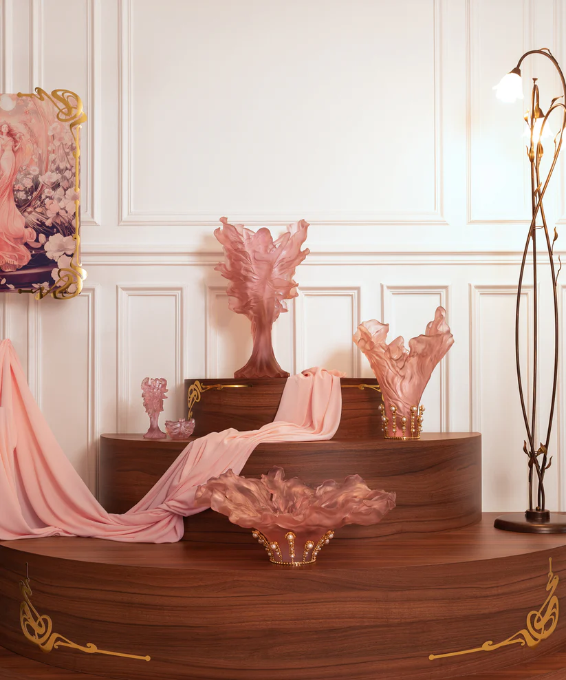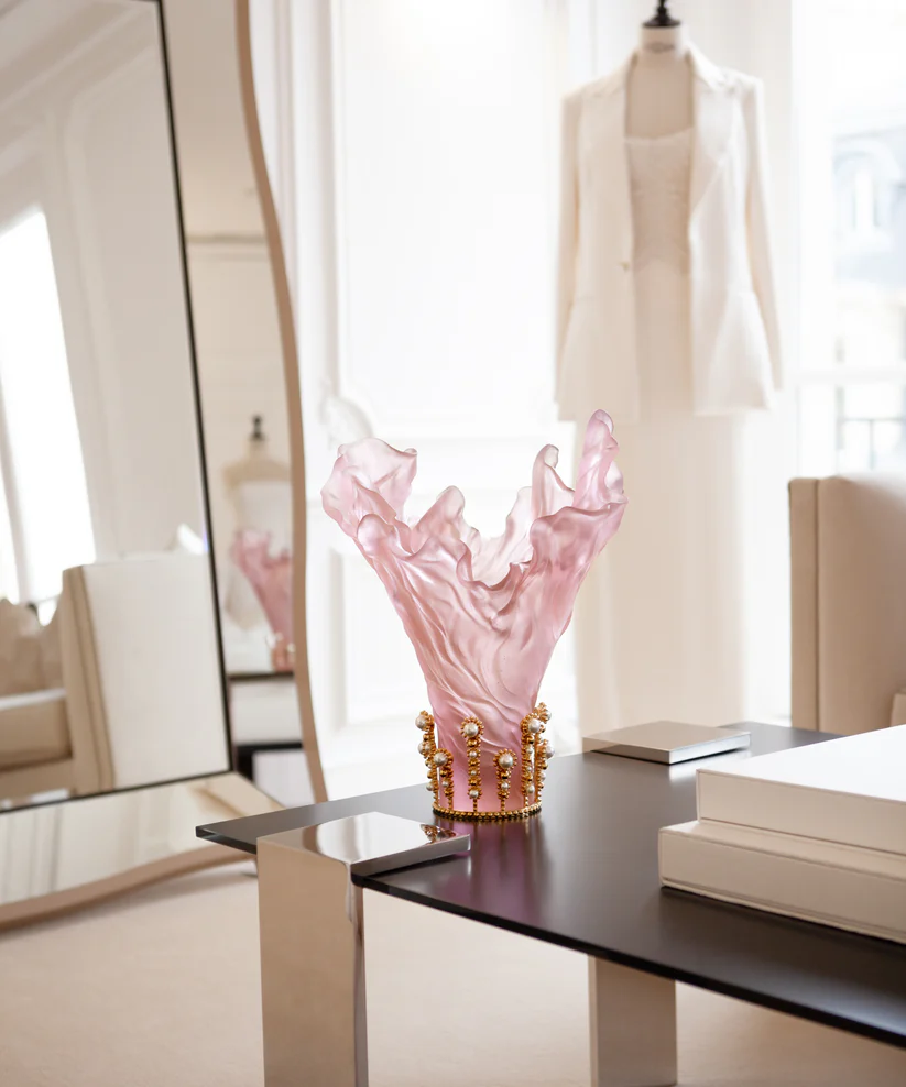 Le vase Poétique by Tamara Ralph Daum évoque la douceur et la puissance mêlées. Réalisé en pâte de verre, il révèle un hommage à la féminité et une sensualité raffinée. Ses jeux de lumière et de transparence subliment la délicatesse du geste artisanal, créant une aura fascinante. Son accessoire en métal doré & perles blanches vient ajouter une touche qui évoque la lumière dorée du cristal. Création unique de la prestigieuse cristallerie Daum, en collaboration avec l’artiste Tamara Ralph. Édition limitée à 125 exemplaires.