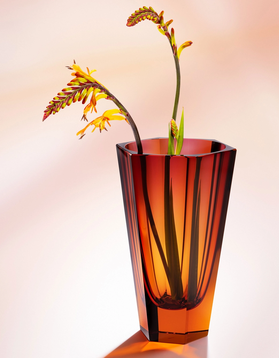 Vase en authentique cristal de bohême taillé, couleur topaz rose. Collection Purity de Moser, la plus prestigieuse & réputée cristallerie de Bohême.