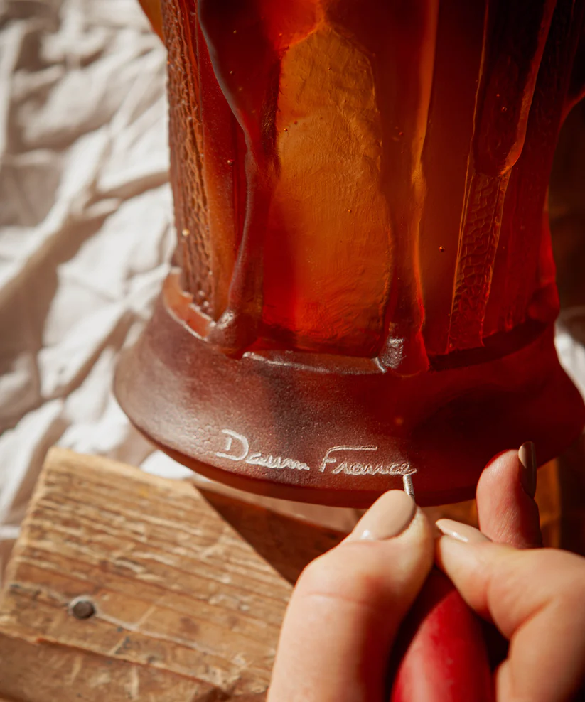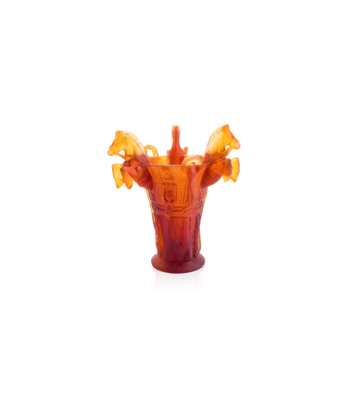 Ce vase Rêve Équestre Daum évoque la noblesse du mouvement. Réalisé avec soin en pâte de verre, technique séculaire maîtrisée par Daum, il révèle le souffle de la nature et la grâce sculptée dans la pâte de verre. Ses jeux de lumière et de transparence subliment une présence magnétique, créant une aura fascinante. Chaque détail témoigne d’un savoir-faire d’exception et d’une passion pour la création. Une œuvre poétique et intemporelle, où l’art et la nature s’unissent, empreinte unique de la prestigieuse cristallerie Daum depuis 1878. Modèle limité à 225 exemplaires.