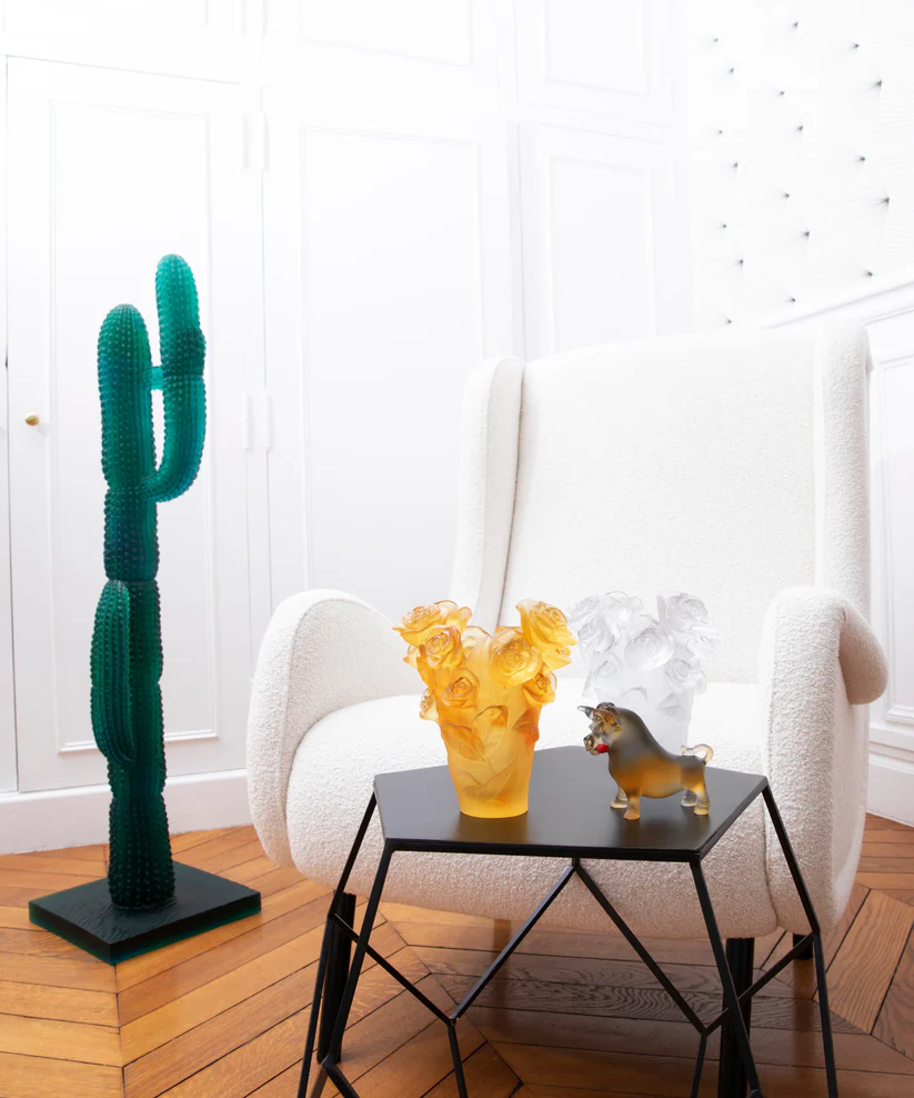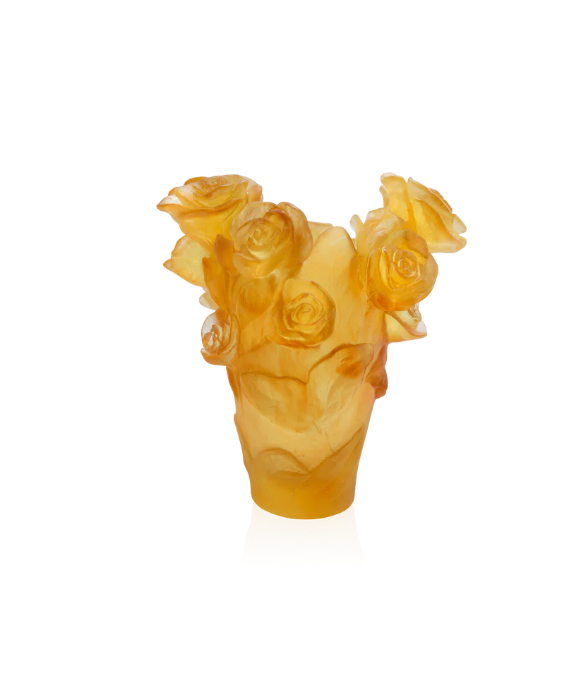 Ce vase Rose Passion Daum, inspiré des merveilles de la nature, rayonne de grâce et de vitalité telle une rose sauvage baignée de soleil dans les champs de Lorraine. Façonné & fabriqué à la main dans une pâte de verre (technique séculaire maîtrisée par Daum qui confère à chaque pièce une individualité unique), ce joyau de l’artisanat français se distingue par sa forme généreuse et ses nuances de jaune, capturant la lumière naturelle et créant des transparences colorées hypnotiques. Chaque regard posé sur ce vase est une invitation à la contemplation, à l’appréciation de la beauté de la nature capturée dans une forme cristalline vivante. Son éclat et son élégance sublimeront vos bouquets ou apporteront une touche de raffinement à votre espace, même lorsqu’il est vide. Création unique de la prestigieuse cristallerie Daum. Édition numérotée.