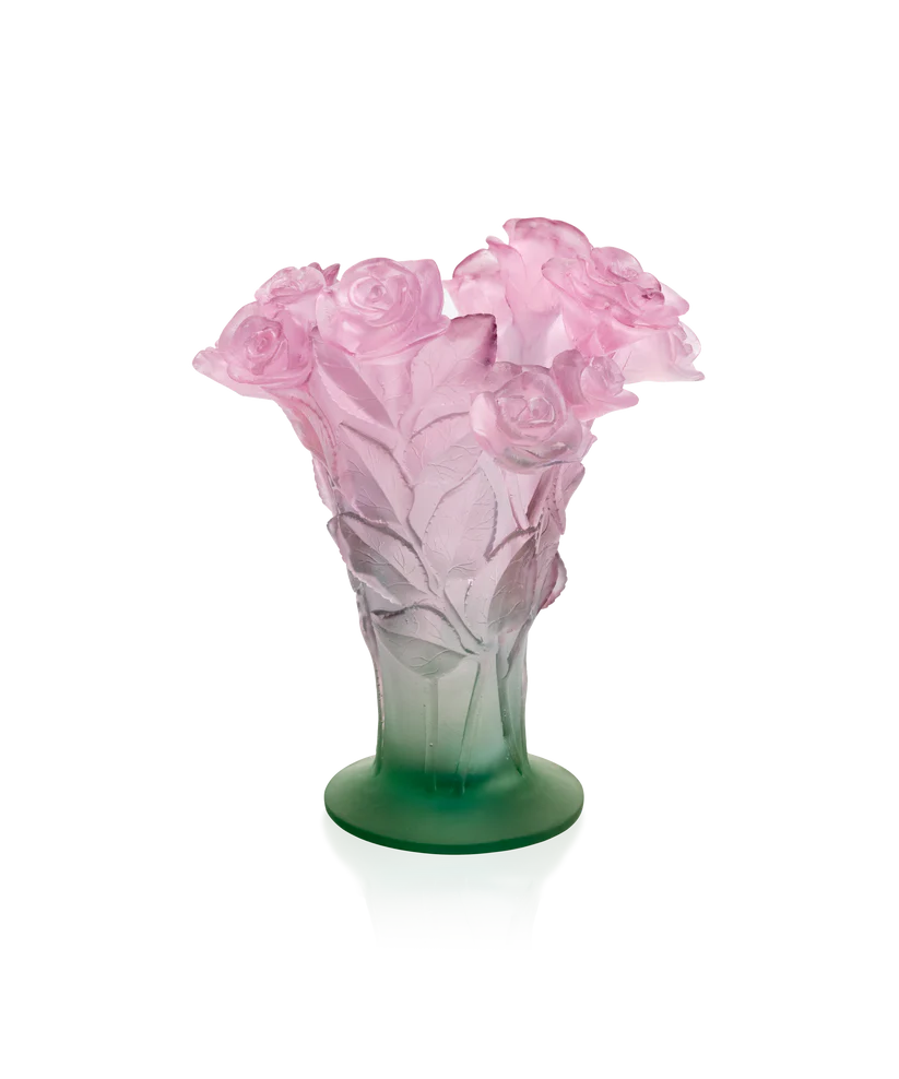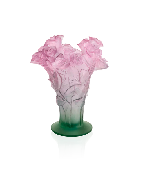 Vase Roses Daum – Vert & Rose – Moyen Modèle