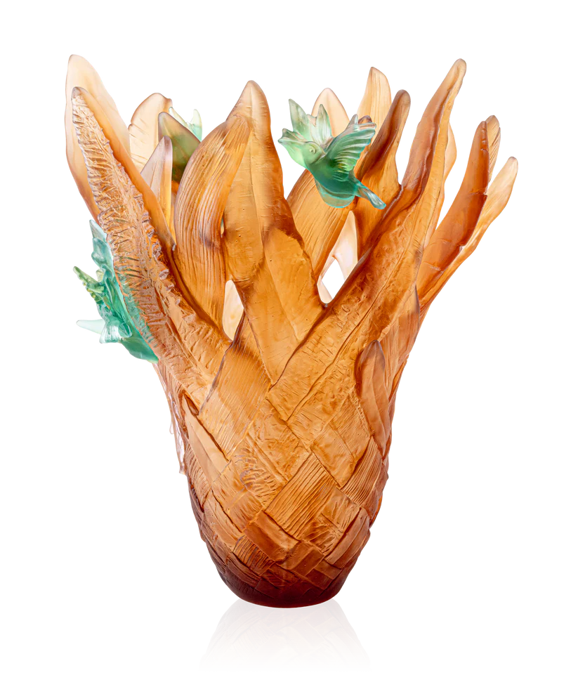 Ce grand vase Tressage Paradis Daum, inspiré des jardins paradisiaques, évoque les saisons bercées par la lumière naturelle. Imposant et généreux, il est confectionné avec soin en pâte de verre, technique séculaire maîtrisée par Daum, ce qui lui confère des courbes gracieuses et un col élancé capturant de manière poétique la fluidité des formes et les transparences colorées. Daum donne vie à un cristal vibrant, transformant chaque espace en un lieu de contemplation raffiné. Vase vide ou fleuri, il invite à l’émerveillement, tissant un lien intime entre l’art et la nature, via l’excellence artisanale des maîtres verriers de la prestigieuse cristallerie Daum. Modèle limité à 99 exemplaires.