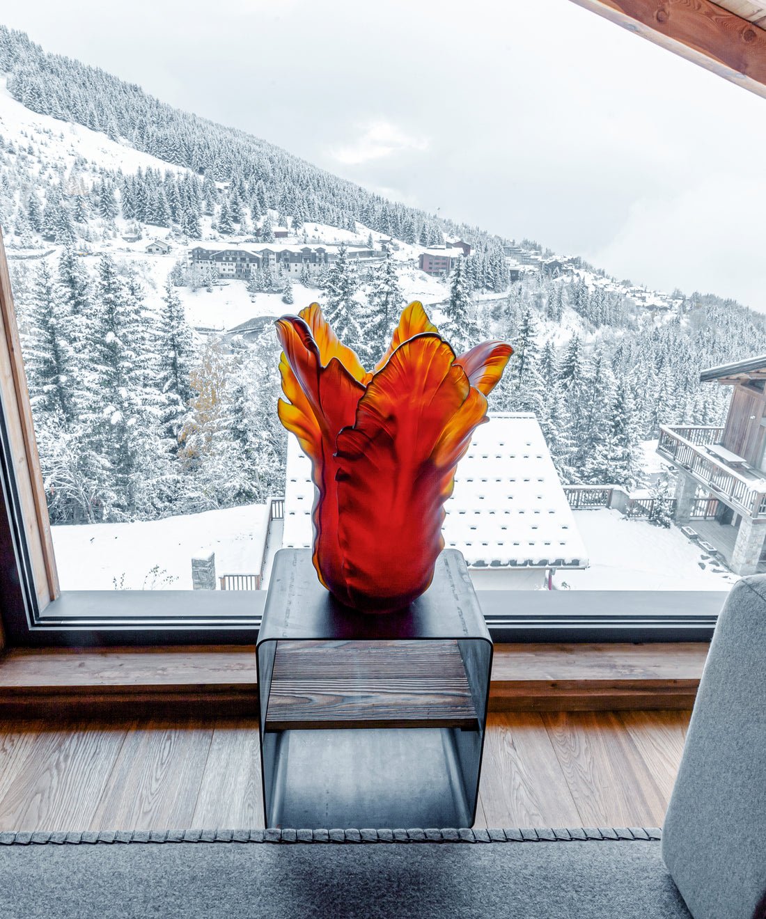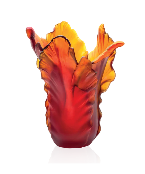 Ce vase Tulipe Daum en ambre foncé, inspiré par la grâce éternelle des tulipes, évoque un jardin secret baigné de lumière douce. Façonné & sculpté avec soin à la main dans la pâte de verre, technique séculaire maîtrisée par Daum, ses courbes gracieuses et son col élancé capturent les nuances changeantes de l’ambre foncé. Il semble presque vivant à mesure que les éclats de lumière dansent sur sa surface. Ce vase est non seulement un objet d’art, mais aussi un hommage à l’excellence des artisans maîtres verriers de Daum. Que vous l’utilisiez pour sublimer vos compositions florales ou comme une pièce contemplative par elle-même, il apportera une note d’élégance raffinée à votre espace. Création unique de la prestigieuse cristallerie Daum. Modèle limité à 50 exemplaires.