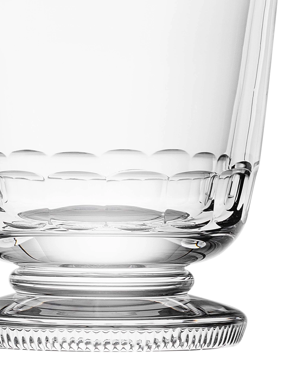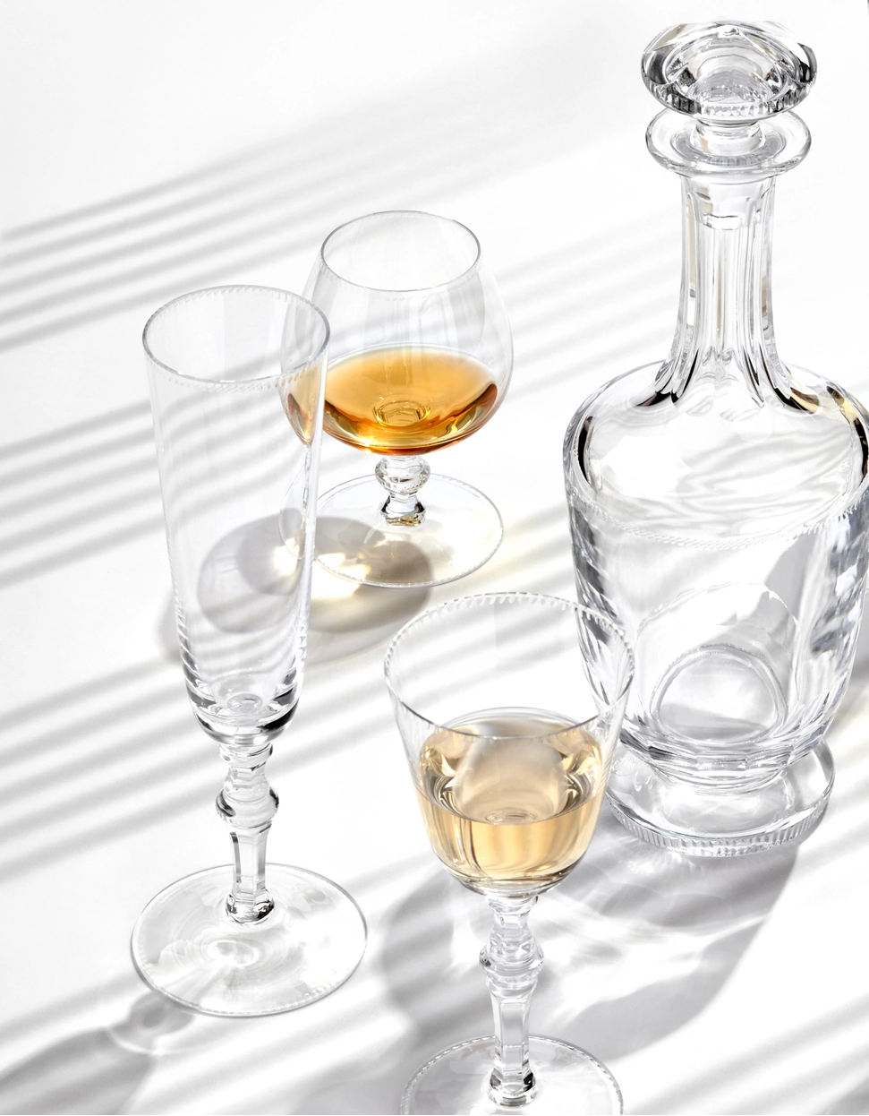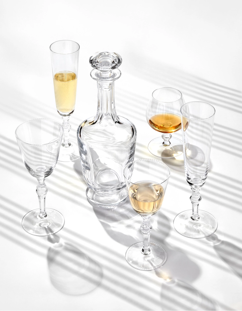 Collection en authentique cristal de bohême, soufflé bouche, taillé et poli à la main selon les mêmes techniques traditionnelles depuis 1837. Inspirée de l’art rococo et classiciste, cette collection se distingue par un calice lisse orné d’un bord finement taillé en forme de perle, et la forme du pied qui rappelle les pieds décorés des pianos et des épinettes de l’époque du célèbre compositeur Mozart. La forme classiciste et le décor délicat, associés à une coupe proéminente, semblent tout à fait naturels, bien qu’ils soient le résultat d’un processus de création très exigeant. Toute la fabrication se déroule dans les ateliers Moser à Carlsbad, en région de Bohême (République Tchèque). Depuis 1837, Moser n’a pas changé sa méthode de fabrication. Aucune machine automatisée n’est utilisée.