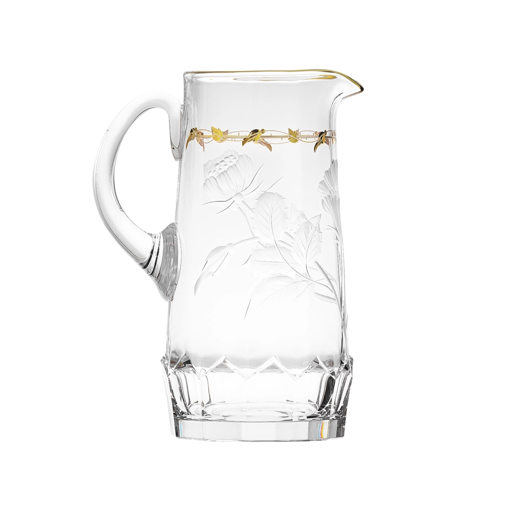 Carafe à eau en authentique cristal de bohême taillé, gravé artistiquement, et subtilement décoré avec de l’or 24 carats. Création signée Moser, la plus prestigieuse & réputée cristallerie de Bohême. Collection Paula, imaginée en 1902, et portant le nom de l’épouse de Leo Moser, le fondateur de Moser.