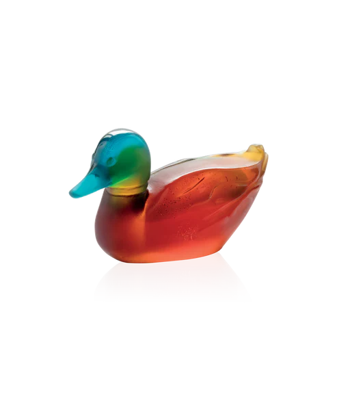 Ce canard colvert Daum, inspiré des prairies verdoyantes, évoque le frisson de la vie sauvage. Façonné à la main en pâte de verre, technique séculaire maîtrisée par Daum, rendant chaque pièce unique. Les nuances de couleur, non précisées, rappellent les éclats de lumière sur les plumes d’un canard en plein vol. Cette sculpture élégante, d’une taille délicate, apporte une touche de nature dans votre intérieur. Invitez à la contemplation avec cette représentation fine de la faune, un témoignage du savoir-faire de la prestigieuse cristallerie Daum depuis 1878.