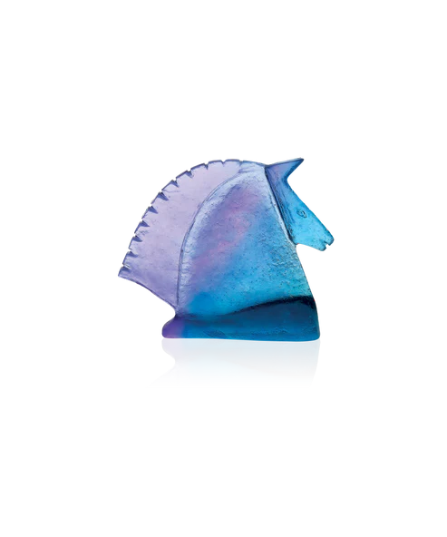 Cette sculpture Daum, réalisée en collaboration avec l’artiste Carlos Mara et évoquant la puissance et la grâce de l’esprit équestre, s’inspire des mouvements naturels et des formes majestueuses de l’animal. Façonnée avec soin en pâte de verre bleue et violette, technique séculaire maîtrisée par Daum, qui confère à l’œuvre une texture riche et une expression saisissante. Chaque courbe, chaque détail, est une célébration de cette technique séculaire de Daum. Cette sculpture, par sa présence magnétique et son mouvement éternel, invite à la contemplation et enrichit l’espace dans lequel elle se trouve avec une beauté et une élégance indéniables. Création unique de la prestigieuse cristallerie Daum. Édition limitée à 500 exemplaires.