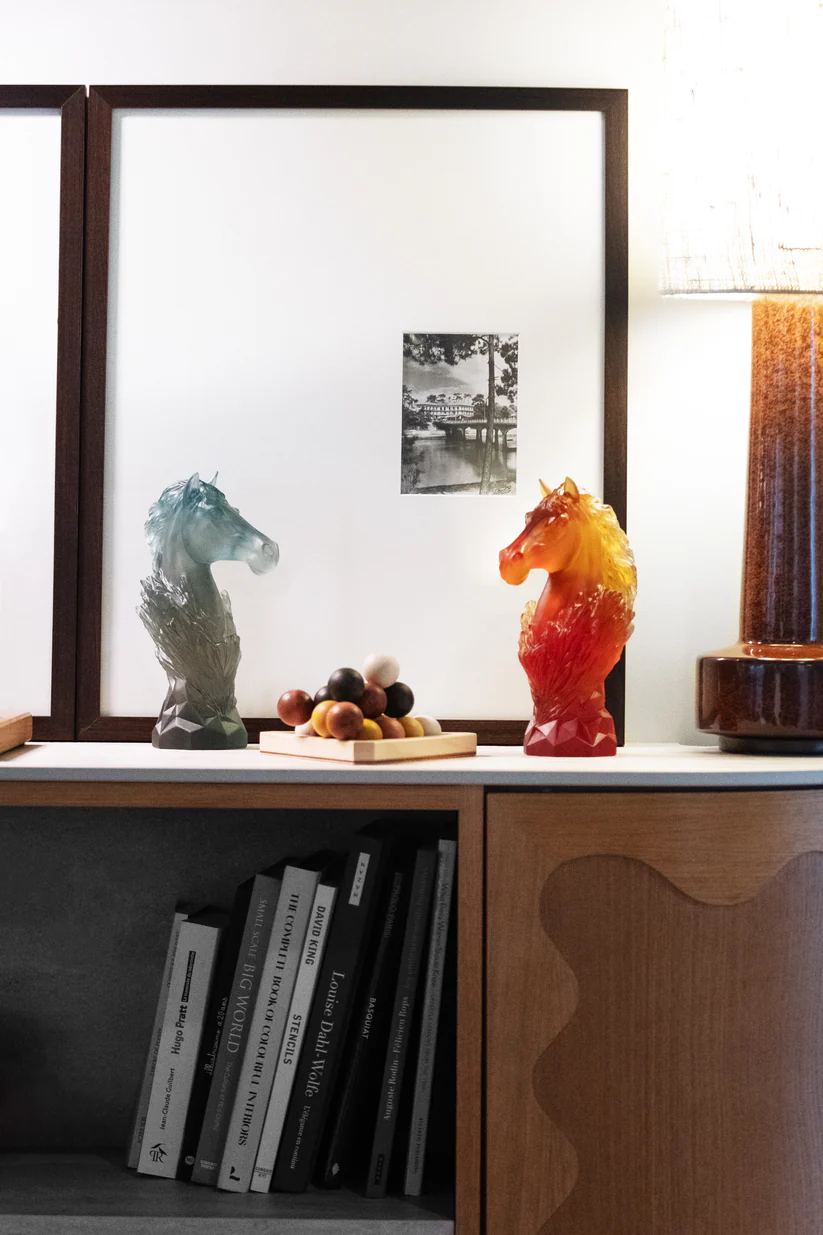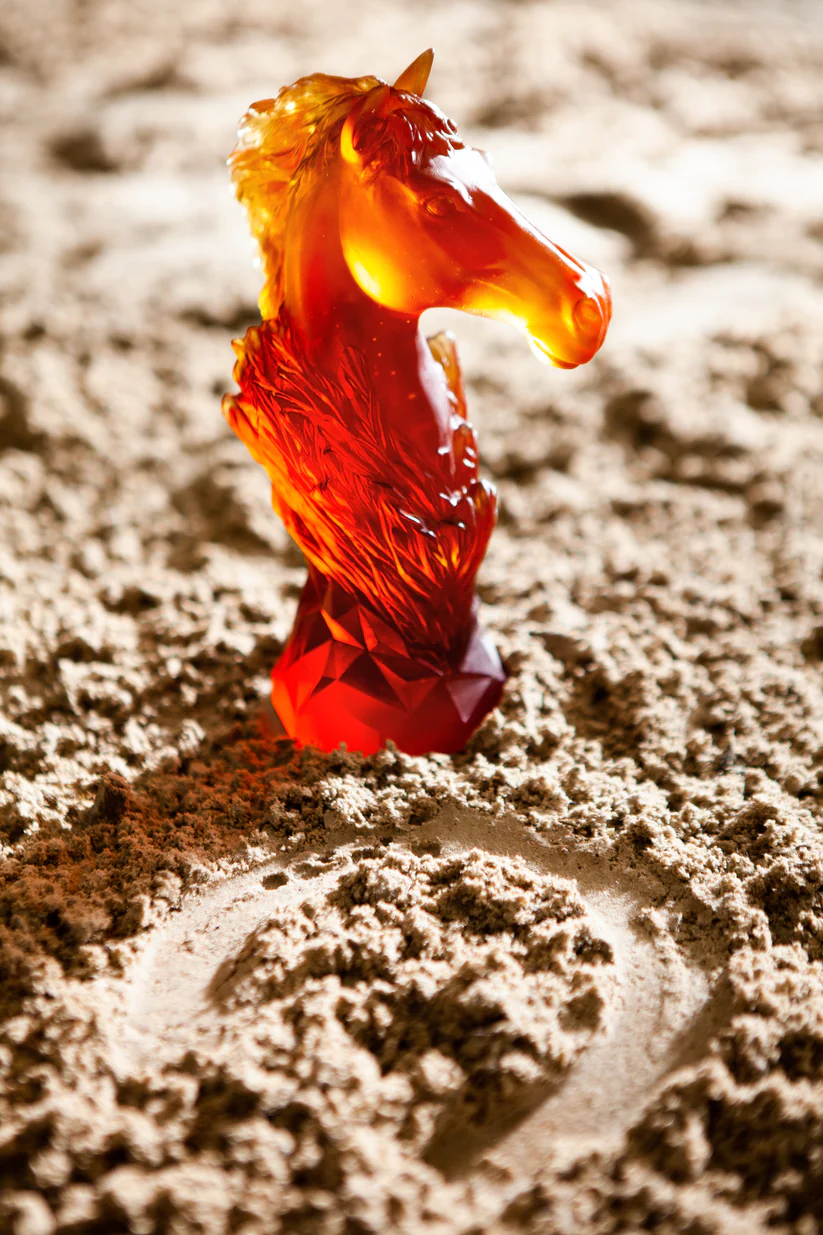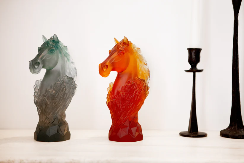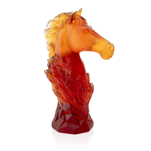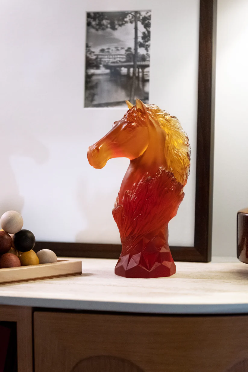Ce Cavalier Daum Ambre, limité à 250 exemplaires dans le monde et inspiré par le jeu noble d’échecs, évoque le galop éternel d’un cheval. Sculptée avec soin en pâte de verre, technique séculaire maîtrisée par Daum, cette sculpture révèle une maîtrise artisanale inégalée, créant une présence imposante. Les nuances de l’ambre capturent la lumière, ajoutant une dimension vivante à cette œuvre d’art. Cette sculpture, avec son expression saisissante et son mouvement figé, devient une pièce maîtresse qui invite à la contemplation. Création unique de la prestigieuse cristallerie Daum. Édition limitée à 250 exemplaires.