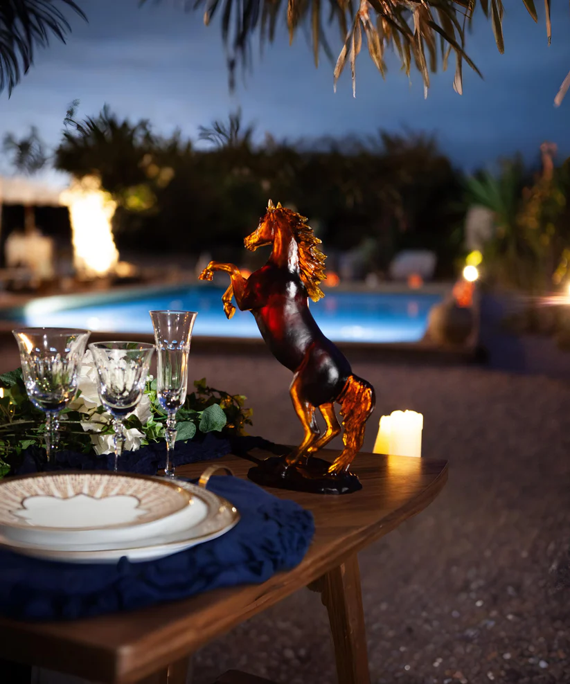 Cette sculpture Daum d’un cheval fougueux, limitée à 500 exemplaires dans le monde et inspirée de la nature libre et impétueuse, évoque la fougue et la force d’un cheval courant à travers les plaines. Sculptée avec soin en pâte de verre, technique séculaire maîtrisée par Daum, elle est sublimée par les nuances brunes et ambrées, capturant l’éclat de lumière et donnant vie à cette œuvre d’art. Chaque détail, chaque mouvement est figé dans ce cristal vivant, créant une présence magnétique. Cette sculpture élancée illuminera votre espace, invitant à la contemplation de la beauté et de l’émotion captée dans chaque détail. Subtile rappel de l’excellence artisanale de la prestigieuse cristallerie Daum. Édition limitée à 500 exemplaires.