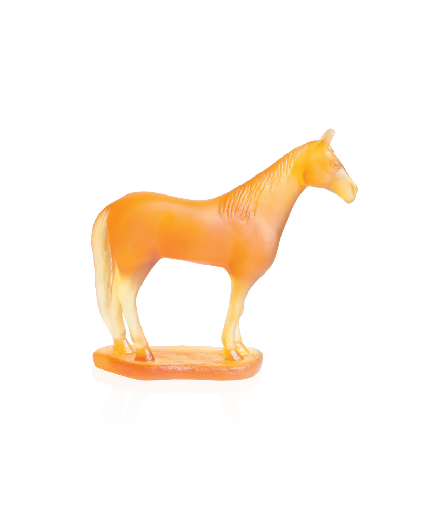 Cette sculpture Daum, inspirée de la noblesse et de l’élan du cheval, symbole fort de l’horoscope chinois, évoque une course libre dans les vastes prairies. Façonnée avec soin en cristal ambre grâce à la pâte de verre, technique séculaire maîtrisée par Daum, cette sculpture révèle une maîtrise artisanale inégalée, faisant jouer les transparences colorées et les reflets vibrants de lumière. Ce cheval élancé, généreux en détails, apportera une touche d’élégance raffinée à votre espace, invitant à la contemplation de la beauté naturelle et du savoir-faire artisanal unique de la prestigieuse cristallerie Daum.