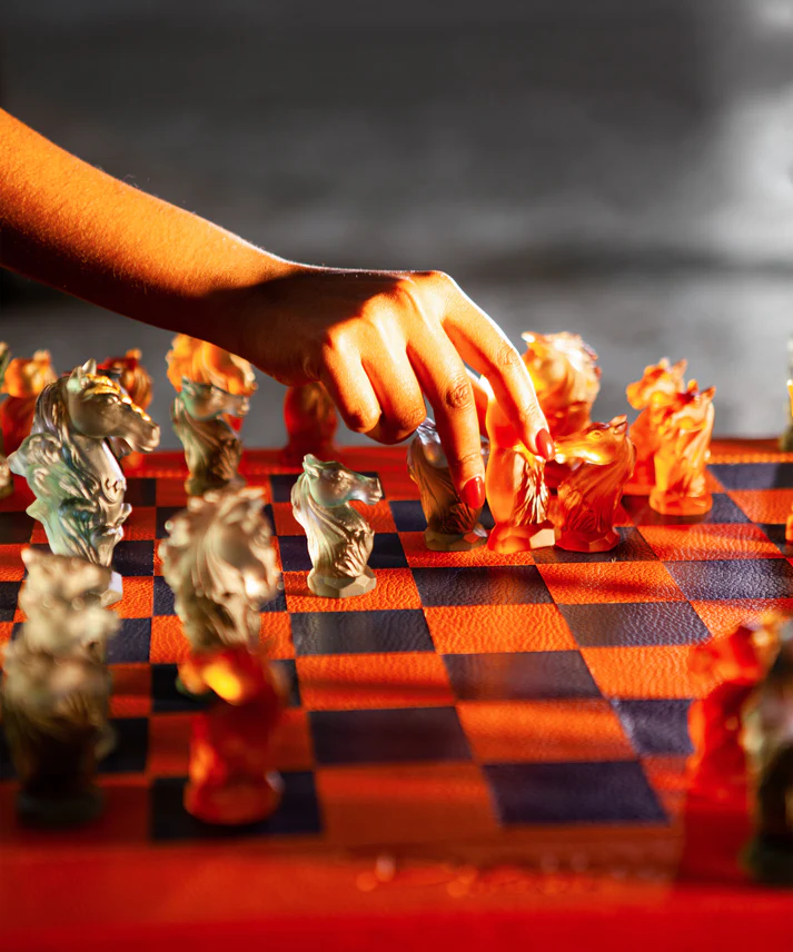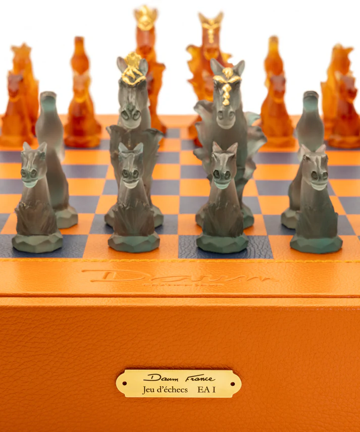 • Jeu d’Échecs Cavalcade Daum, avec pions en pâte de verre. Édition limitée à 50 exemplaires.