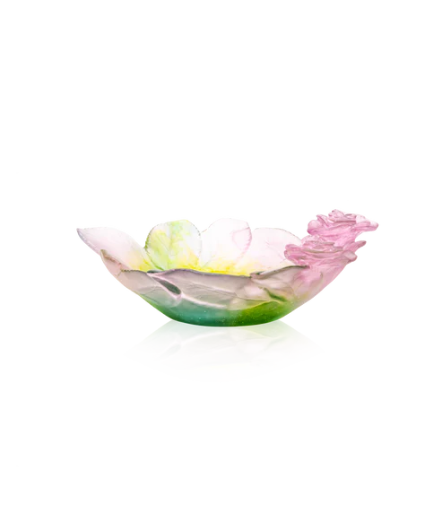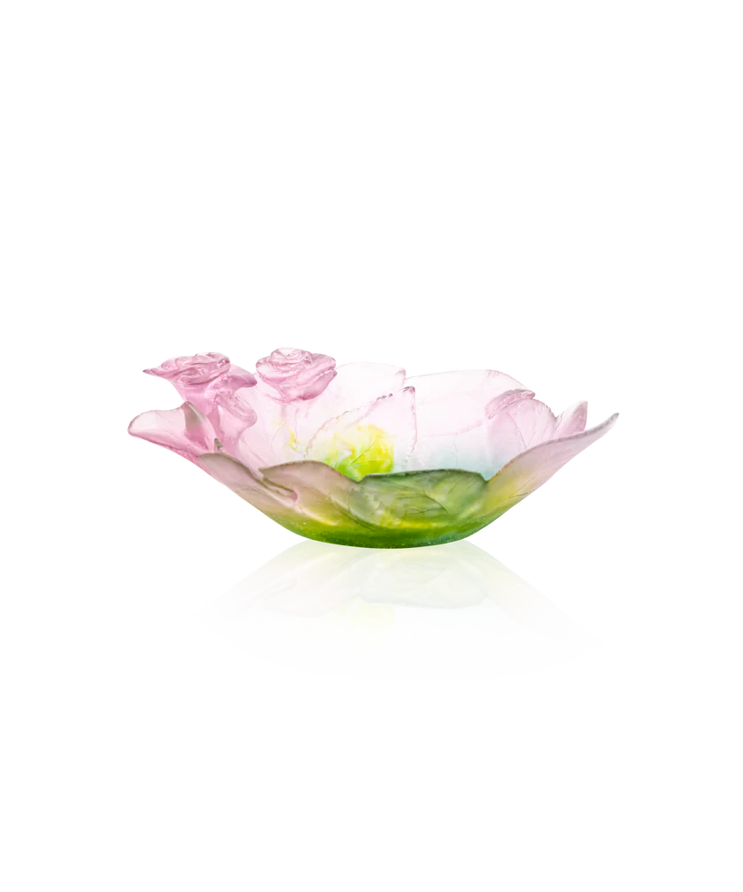 Ce vide-poche Daum, issu de la collection Roses et inspiré par la majesté des jardins en éveil, capture l’essence des roses multicolores sous une lumière matinale. Chaque nuance de l’arc-en-ciel est soigneusement façonné en pâte de verre, technique séculaire maîtrisée par Daum, qui révèle la transparence et l’éclat du cristal vivant. Les couleurs dansent et se fondent entre elles, créant une mosaïque de lumière naturelle. Majestueusement posé sur une table ou une étagère, ce vide-poche Daum apporte une touche de grâce et d’élégance à votre intérieur, invitant à une contemplation quotidienne de cet art verrier exceptionnel de la prestigieuse cristallerie Daum.