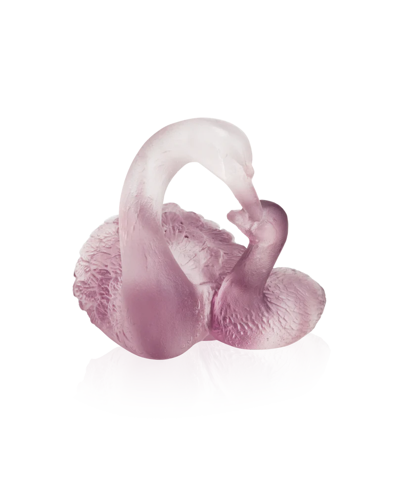 Ces cygnes Daum en rose, inspirés de la grâce majestueuse de ces animaux, évoque une romance éternelle. Façonné à la main en pâte de verre, technique séculaire maîtrisée par Daum, chaque détail de ces oiseaux est rendu avec une précision étonnante, des courbes délicates de leurs corps à la douceur de leur plumage. Les nuances roses captent et réfractent la lumière, créant une présence magnétique. Le savoir-faire artisanal de Daum brille dans cette œuvre, où la technique séculaire de la pâte de verre donne vie à ces créatures d’une beauté éblouissante. Que ce soit en cadeau ou pour votre propre collection, cette sculpture apporte une touche de poésie et d’élégance à n’importe quel espace. Création unique de la prestigieuse cristallerie Daum.