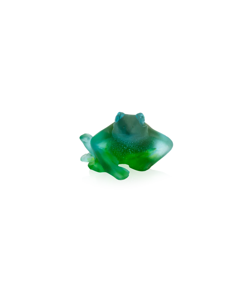 Cette rainette turquoise Daum, inspirée de la nature, évoque l’éclat d’une vie cachée dans les jardins luxuriants. Façonnée à la main en pâte de verre, technique séculaire maîtrisée par Daum, elle capture avec élégance la forme et l’expression saisissante de la rainette. Les couleurs non précisées de cette sculpture reflètent les différentes tonalités du cristal vivant, créant un jeu de transparences colorées et de lumière. Petite mais imposante, cette sculpture apporte une présence magnétique à votre espace, invitant à la contemplation et à l’admiration du savoir-faire artisanal de la prestigieuse cristallerie Daum.