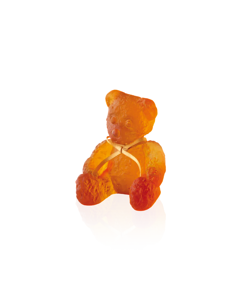 • Mini-Doudours Daum en pâte de verre, réalisé en collaboration avec l’artiste Serge Mansau. Couleur ambre.