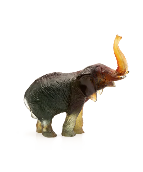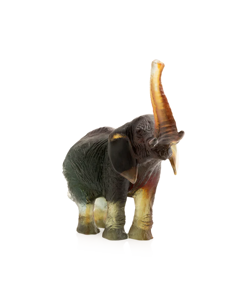 Cet éléphant Daum, réalisé en collaboration avec l’artiste Jean-François Leroy, évoque les vastes plaines africaines où ces majestueux animaux règnent. Façonnée à la main en pâte de verre, technique séculaire maîtrisée par Daum, chaque pièce est unique, reflétant une palette de verts et d’ambres qui capturent et diffusent la lumière. L’expression saisissante de l’éléphant et son mouvement éternel sont figés dans le cristal, offrant une présence magnétique. Cette pièce imposante, à la fois délicate et puissante, éclaire votre espace de sa beauté naturelle, invitant à la contemplation et à l’émerveillement. Création unique de la prestigieuse cristallerie Daum.