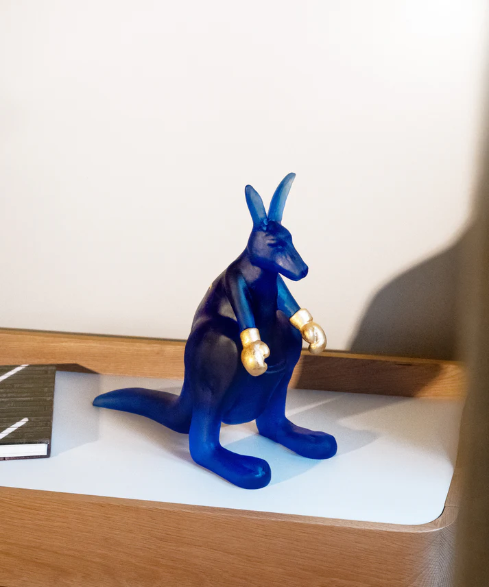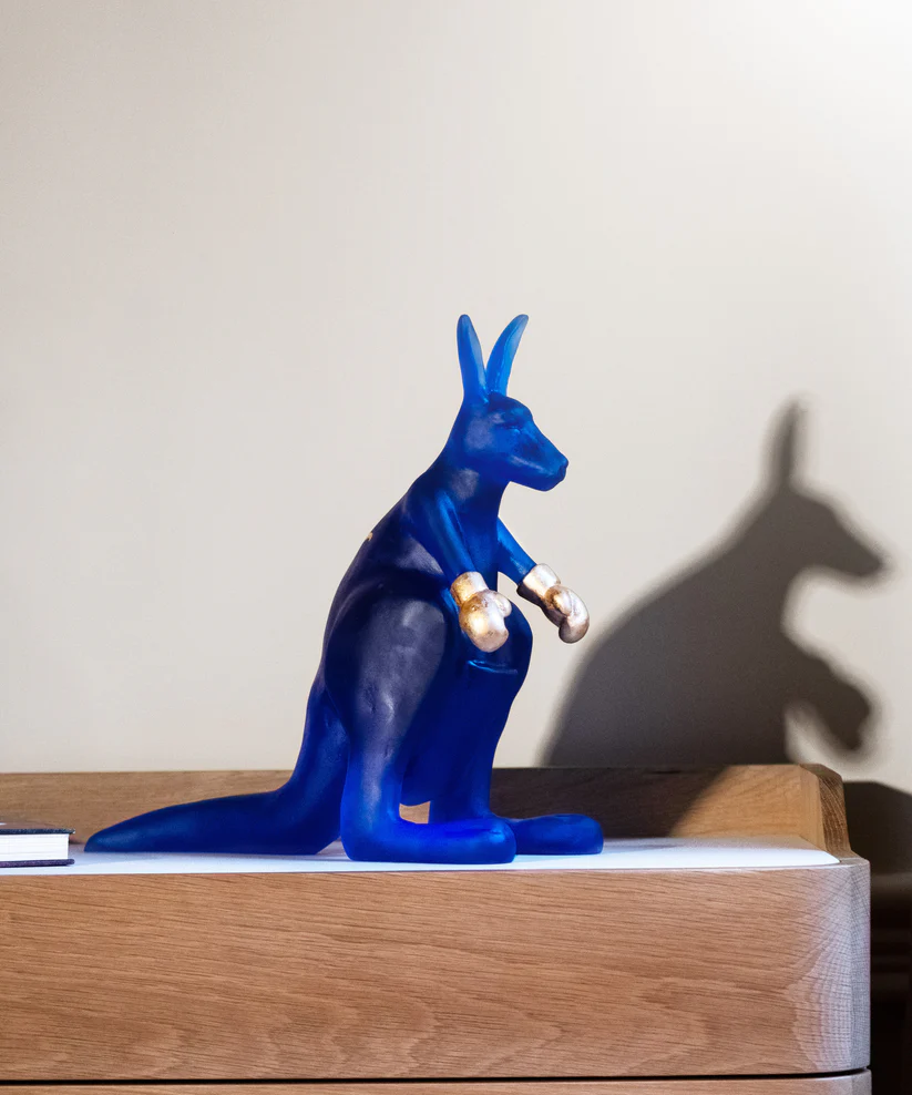 Ce Kangourou Wally Daum, réalisé en collaboration avec l’artiste Yves Henry et inspiré de la faune sauvage, évoque la tendresse maternelle. Façonnée à la main en pâte de verre, technique séculaire maîtrisée par Daum, cette sculpture animalière capture la lumière naturelle, révélant des transparences colorées non précisées. La maîtrise artisanale de Daum rend chaque pièce unique, avec une présence magnétique qui attire le regard. Cette sculpture ajoutera une touche d’élégance et de beauté à votre intérieur, invitant à la contemplation de la nature dans son expression la plus pure. Création unique de la prestigieuse cristallerie Daum. Édition limitée à 75 exemplaires.