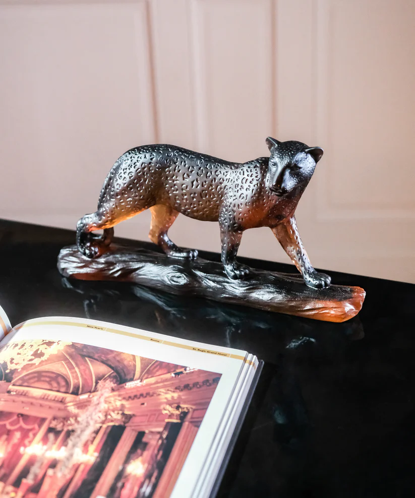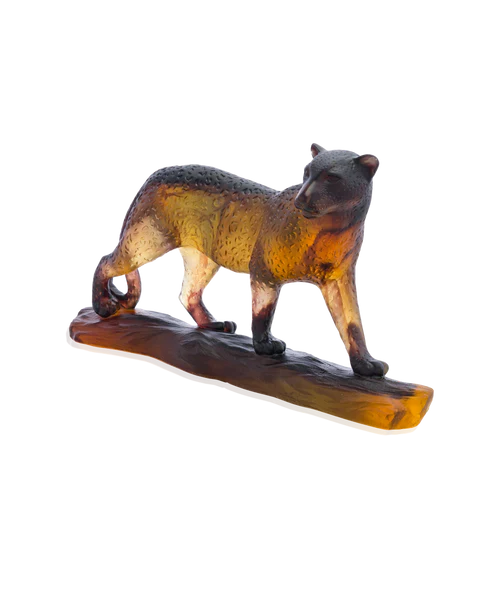 Cette sculpture Léopard Daum, limitée à 500 exemplaires dans le monde, évoque les reflets du cristal vivant. Façonnée avec soin en pâte de verre, technique séculaire maîtrisée par Daum, elle révèle une présence magnétique et la noblesse du mouvement. Ses jeux de lumière et de transparence subliment l’élégance naturelle, créant une aura fascinante. Chaque détail témoigne d’un savoir-faire d’exception et d’une passion pour la création. Une œuvre poétique et intemporelle, où l’art et la nature s’unissent. Signature de la prestigieuse cristallerie Daum depuis 1878. Édition limitée à 500 exemplaires.