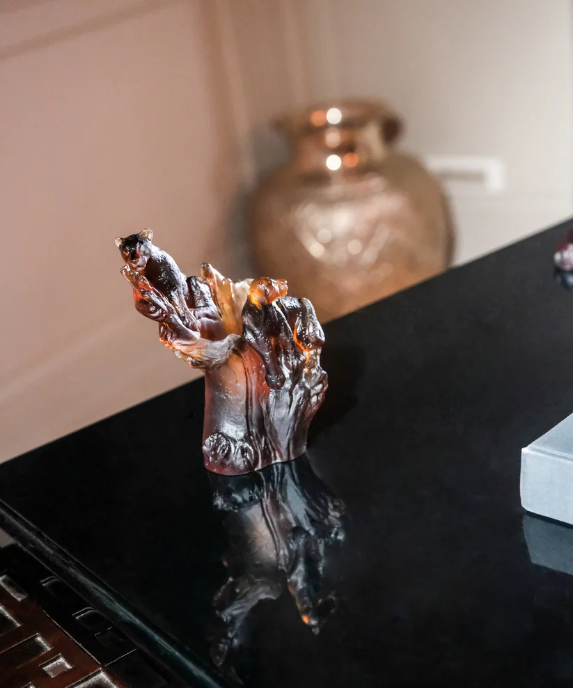Ce porte-crayon Daum, issu de la collection Léopard, évoque la noblesse du mouvement. Façonné en pâte de verre, technique séculaire maîtrisée par Daum, il révèle la grâce sculptée dans la pâte de verre et une présence magnétique. Ses jeux de lumière et de transparence subliment les reflets du cristal vivant, créant une aura fascinante. Chaque détail témoigne d’un savoir-faire d’exception et d’une passion pour la création. Une œuvre poétique et intemporelle, où l’art et la nature s’unissent. Signature unique e la prestigieuse cristallerie Daum depuis 1878. Édition numérotée.
