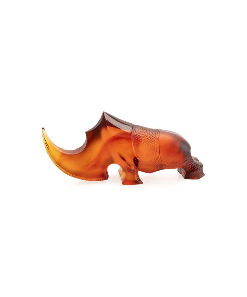 Ce Rhinocéros Ongava Daum ambre, réalisé en collaboration avec l’artiste Gé Pellini et inspiré de la majestuosité sauvage de l’Ongava, captive par son mouvement éternel. Façonné à la main en pâte de verre, technique séculaire maîtrisée par Daum, il capture des transparences colorées qui varient au gré de la lumière. L’artisanat sublimé donne vie à cette pièce, évoquant la force et le caractère de l’animal dans des tons ambre délicats. Une présence imposante qui, placée dans votre espace, invite à une contemplation raffinée de la nature immortalisée par l’art du cristal vivant. Création unique de la prestigieuse cristallerie Daum. Édition limitée à 125 exemplaires.