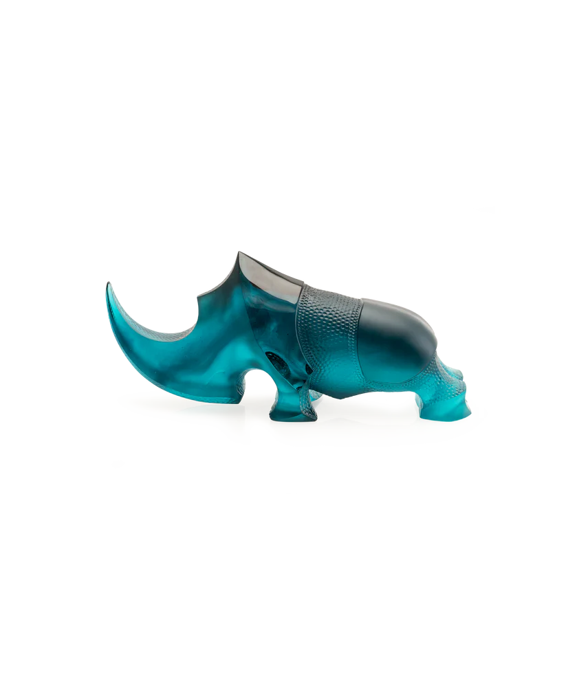 Ce Rhinocéros Ongava Daum bleu, réalisé en collaboration avec l’artiste Gé Pellini et inspiré par la majesté de la faune africaine, fait revivre un rhinocéros Ongava. Façonné à la main en pâte de verre, technique séculaire maîtrisée par Daum, l’artiste Gé Pellini capture l’énergie brute et la force tranquille de cet animal imposant. Les nuances de bleu, parfois profondes, parfois légères, évoquent les mystères des contrées sauvages. Cette présence magnétique, figée dans un mouvement éternel, apporte à votre espace une touche d’élégance sauvage et une invitation à la contemplation. Création unique de la prestigieuse cristallerie Daum. Édition limitée à 125 exemplaires.