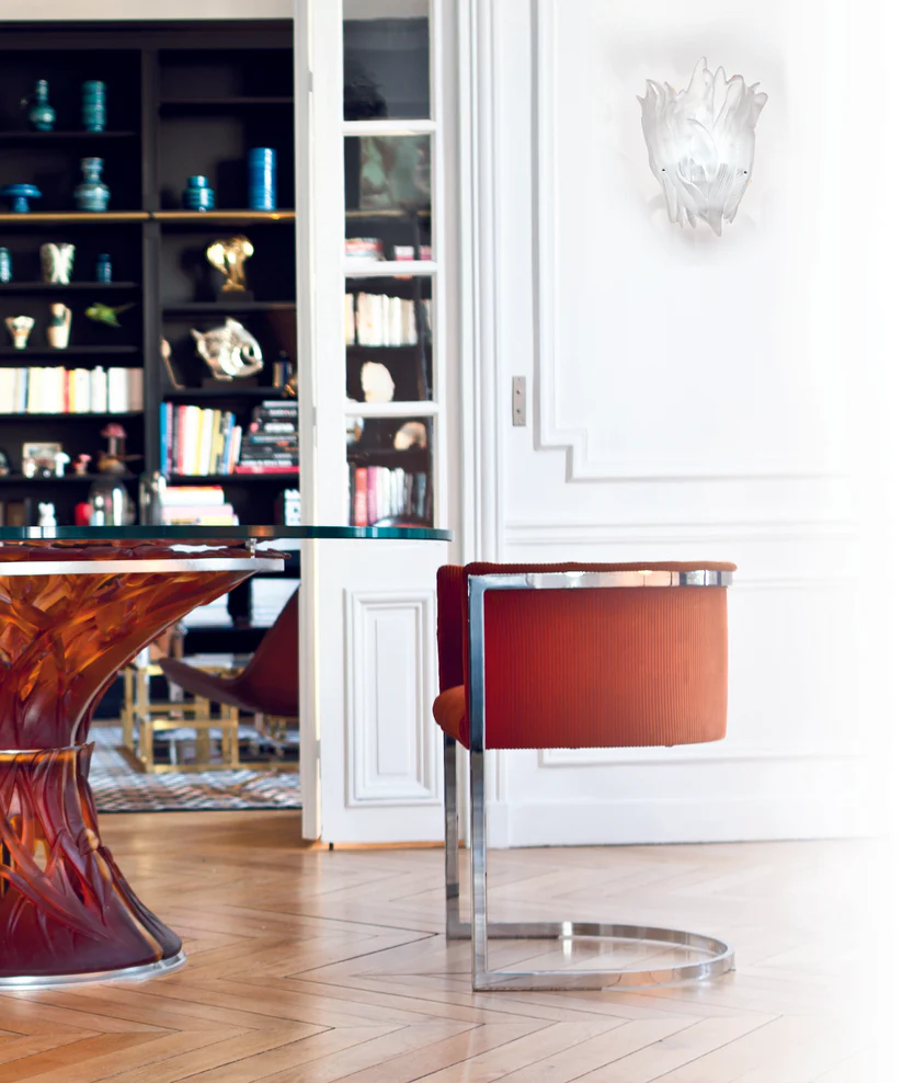 Cette applique blanche Daum, issue de la collection Végétale, évoque l’harmonie entre lumière et matière. Façonnée en pâte de verre, technique séculaire maîtrisée par Daum, elle révèle la maîtrise du geste artisanal et la transparence comme langage universel. Ses jeux de lumière et de transparence subliment la rencontre du savoir-faire et de l’émotion, créant une aura fascinante. Chaque détail témoigne d’un savoir-faire d’exception et d’une passion pour la création. Une œuvre poétique et intemporelle, où l’art et la nature s’unissent. Signature unique de la prestigieuse cristallerie Daum depuis 1878. Édition numérotée.