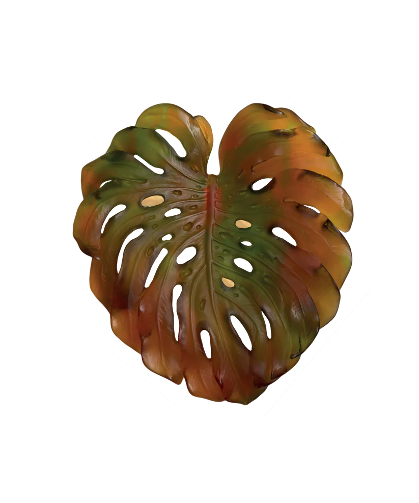 • Feuille Murale Monstera Daum en pâte de verre, réalisée en collaboration avec l’artiste Emilio Robba. Couleur ambre, petit modèle, fixation courte. Édition numérotée.